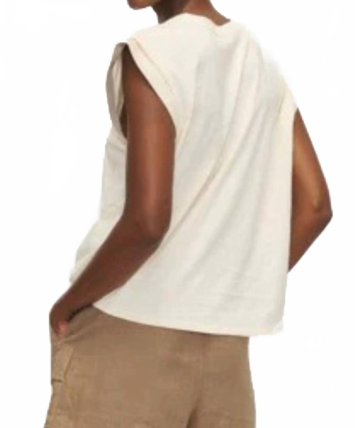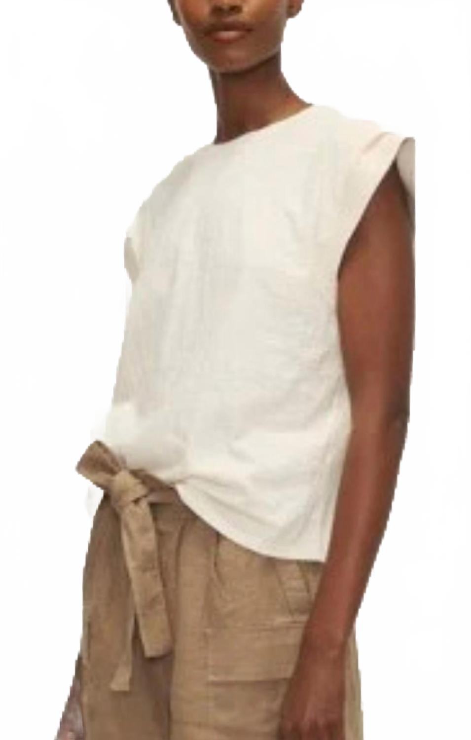 Блузка, которая никогда не выйдет из моды. Украсьте свой гардероб топом Francesca без рукавов от Melissa Nepton, который идеально подходит как для работы, так и для званых ужинов. Эта кремовая блузка из легкого 80% хлопка сочетает в себе стильные вставки из искусственной кожи на плечах, предлагая уникальную интерпретацию классического дизайна. Благодаря круглому вырезу и меланжевой отделке этот топ универсален и стильный. Застежка: надевайте. Уход: машинная стирка.