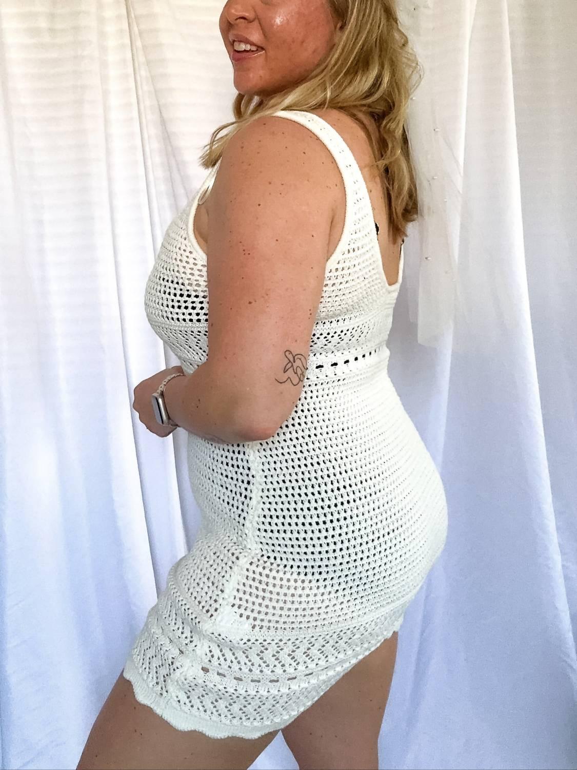Идеальное мини-платье для теплых месяцев. Представляем платье Mariposa Crochet Dress от LE LIS - незаменимый аксессуар для летнего отдыха. Это облегающее платье без рукавов с очаровательной фактурой, связанное крючком, с круглым вырезом и волнистым подолом идеально подходит для пляжного отдыха или медового месяца. Это мини-платье кремового цвета из смеси хлопка (60% хлопка и 40% акрила) подчеркивает стиль бохо-шик. Стирайте вручную и сушите на горизонтальной поверхности, чтобы ваш прибрежный стиль оставался безупречным. Доступные размеры: XS (0-2), SM (4-6), MED (8-10), LRG (12-14); на модели фото среднего размера.