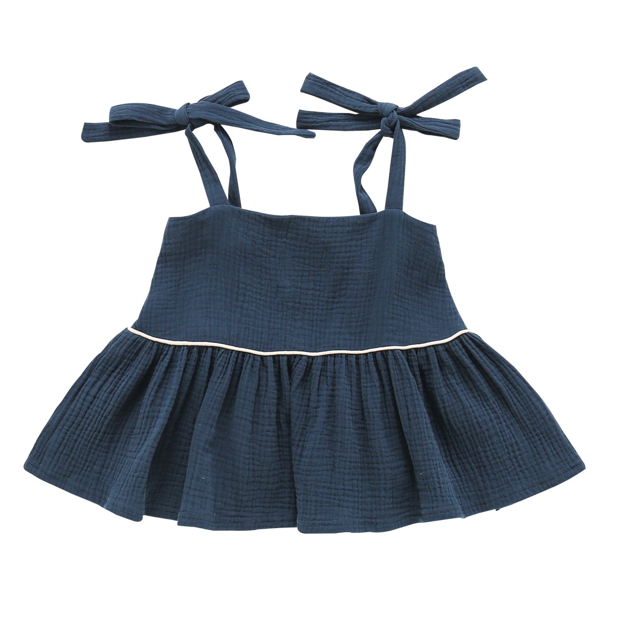 Детский топ с пеплумом и завязками Omamimini, темно-синий