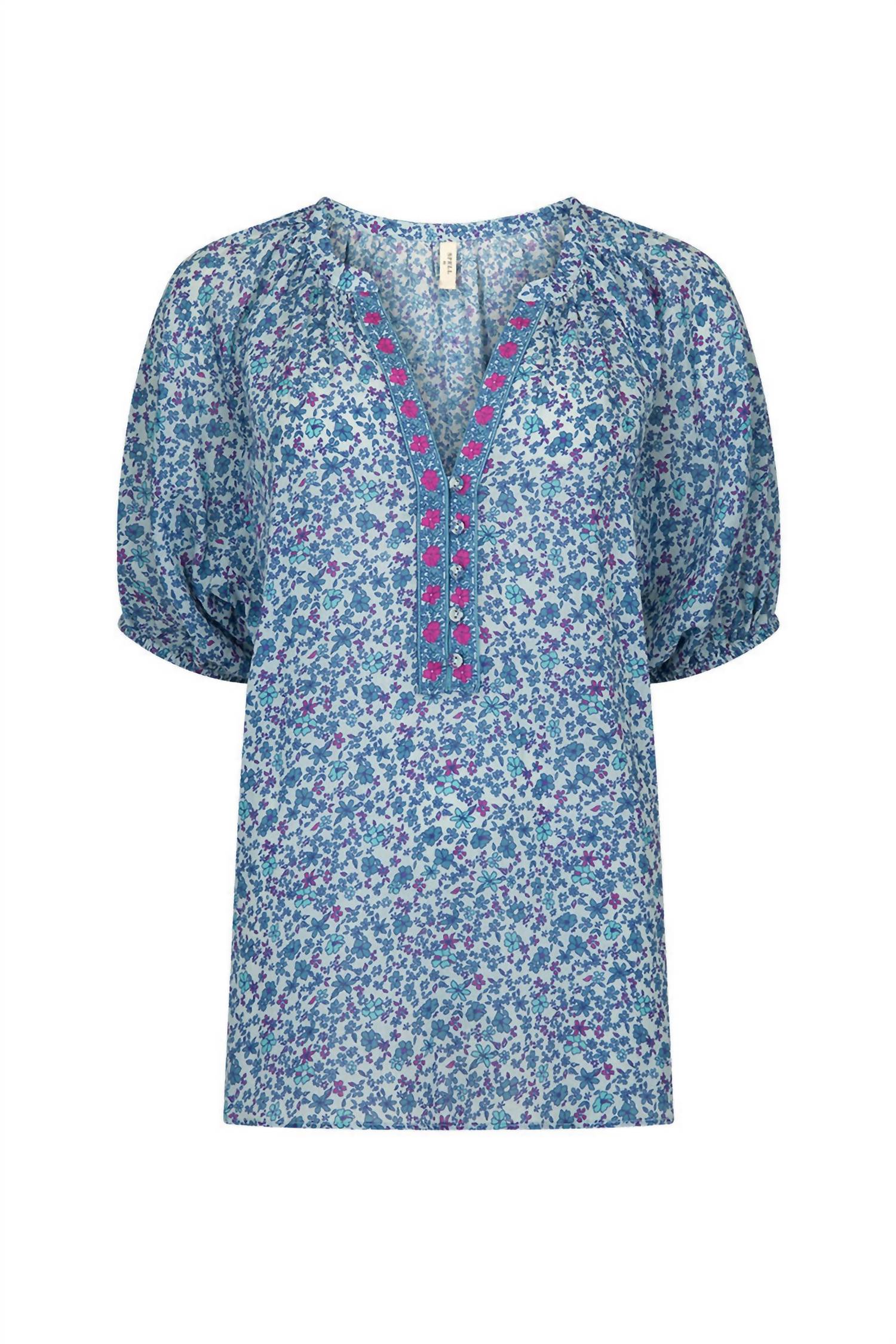 Откройте для себя блузку с короткими рукавами Spell Love Jetty в восхитительном оттенке Nirvana, сочетающую в себе богемный стиль и женственное очарование. Эта блузка с рукавами до локтя, изготовленная из 100% органического крепа из хлопка, украшена очаровательным цветочным узором и имеет привлекательный V-образный вырез. Стирать в стиральной машине с мягким моющим средством, сушить на веревке в тени, придать форму и гладить утюгом при низкой температуре во влажном состоянии, или отдать в химчистку. Идеально подходит для летнего отпуска и праздников.