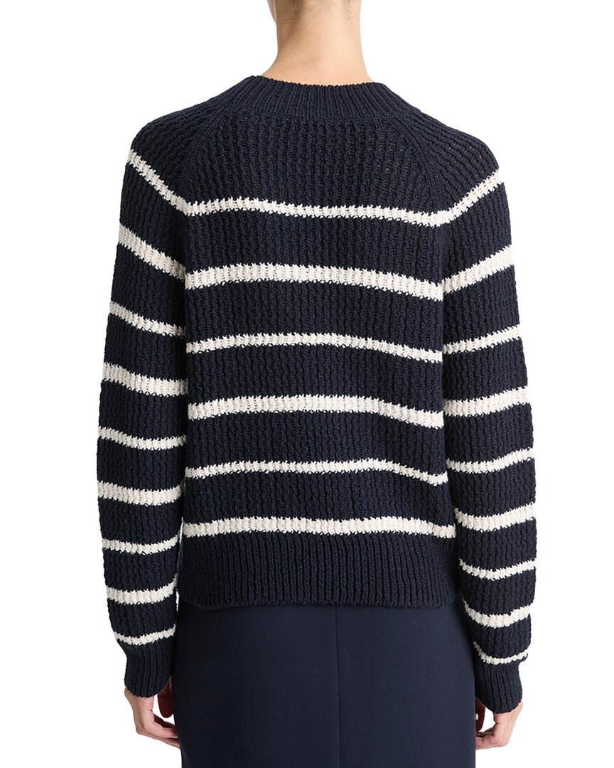 Украсьте свой повседневный стиль с помощью джемпера Vince Ribbed Stripe. Этот джемпер, изготовленный из роскошной смеси хлопка и полиамида, отличается стильным темно-синим рисунком в полоску пампасного цвета. Ребристая текстура добавляет современный штрих, а свободный крой обеспечивает комфорт в течение всего дня. Этот джемпер, изготовленный в Италии с максимальным вниманием к деталям, станет незаменимым дополнением к вашему гардеробу. Сочетайте его с любимыми джинсами для создания стильного и непринужденного образа. Почувствуйте вневременной и непринужденный стиль Vince с этой незаменимой вещью.