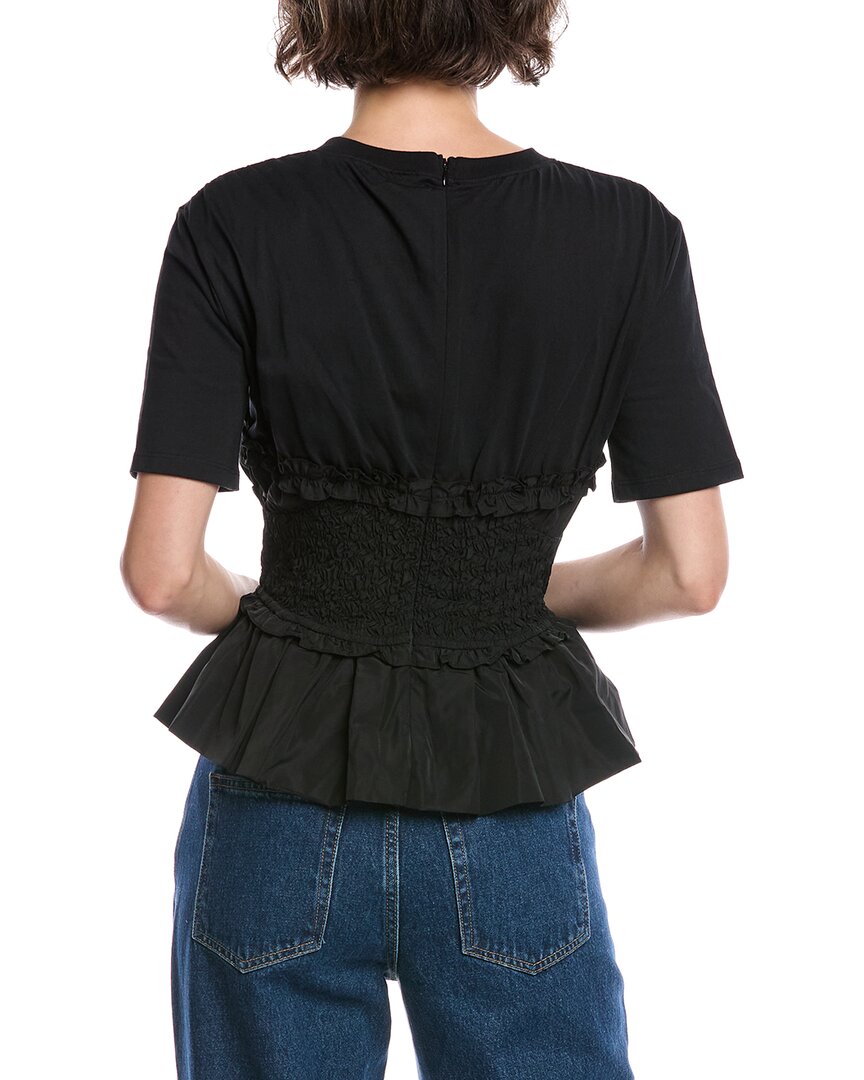 Представляем топ Sea New York Diana Taffeta - шикарное и изысканное дополнение к вашему гардеробу. Этот черный топ с присборенной талией, баской и оборкой придает ему женственности. Топ изготовлен из 100% хлопка с отделкой из 100% полиэстера, он стильный и удобный. Длина от плеча до подола составляет около 50 см, что делает его идеальным выбором для любого случая. Независимо от того, наденете ли вы его нарядно или нет, этот топ обязательно произведет на вас впечатление. Только химчистка. Импортный товар. Рост модели - 178 см, на нем размер S. Обратите внимание, что размеры могут незначительно отличаться в зависимости от размера.
