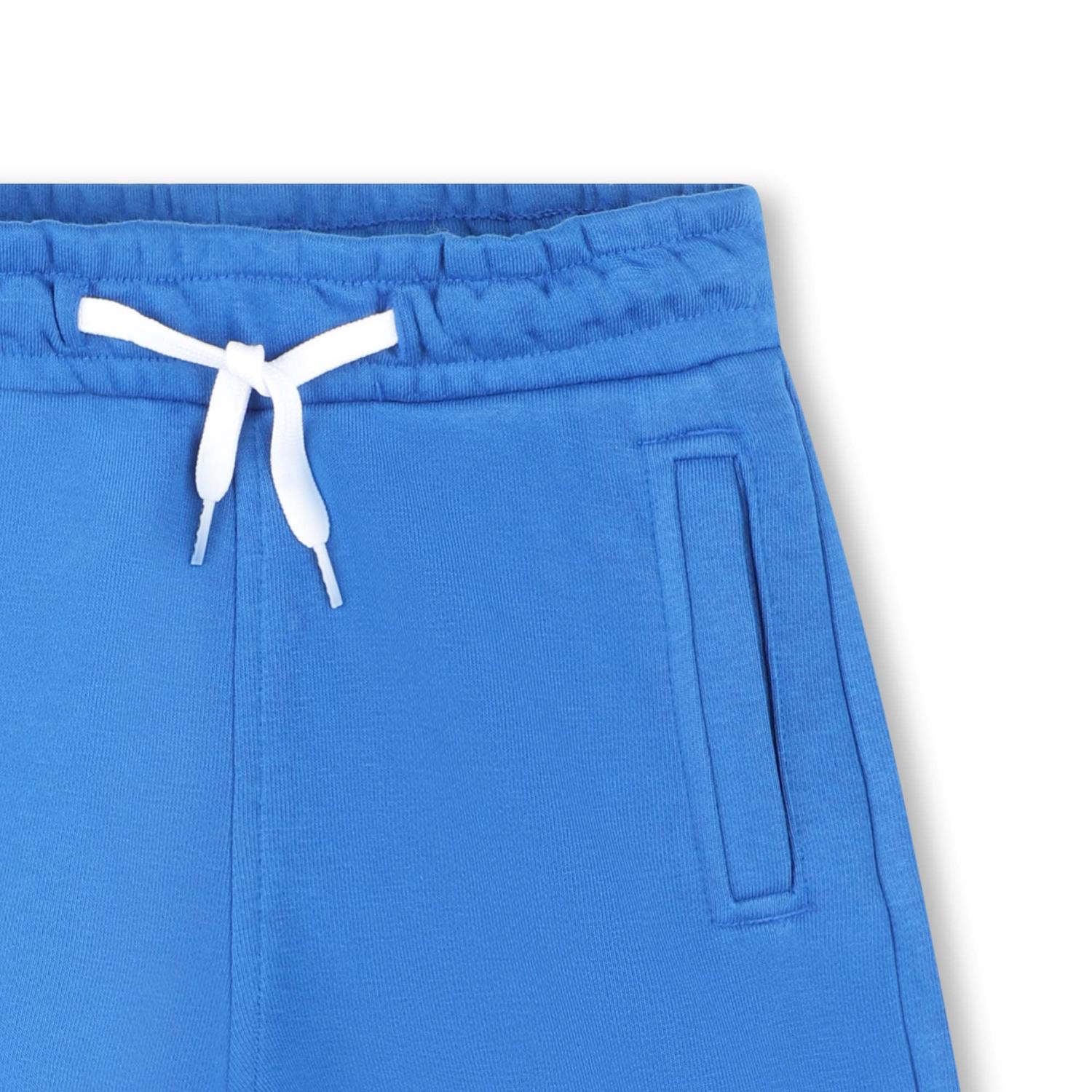 Bright blue shorts for boys by BOSS. Made from a mid-weight cotton jersey, they feature the brands logo printed in white on leg and have front pockets with outlined stitching. There is an elasticated waistband with a white branded drawstring to ensure a perfect fit.