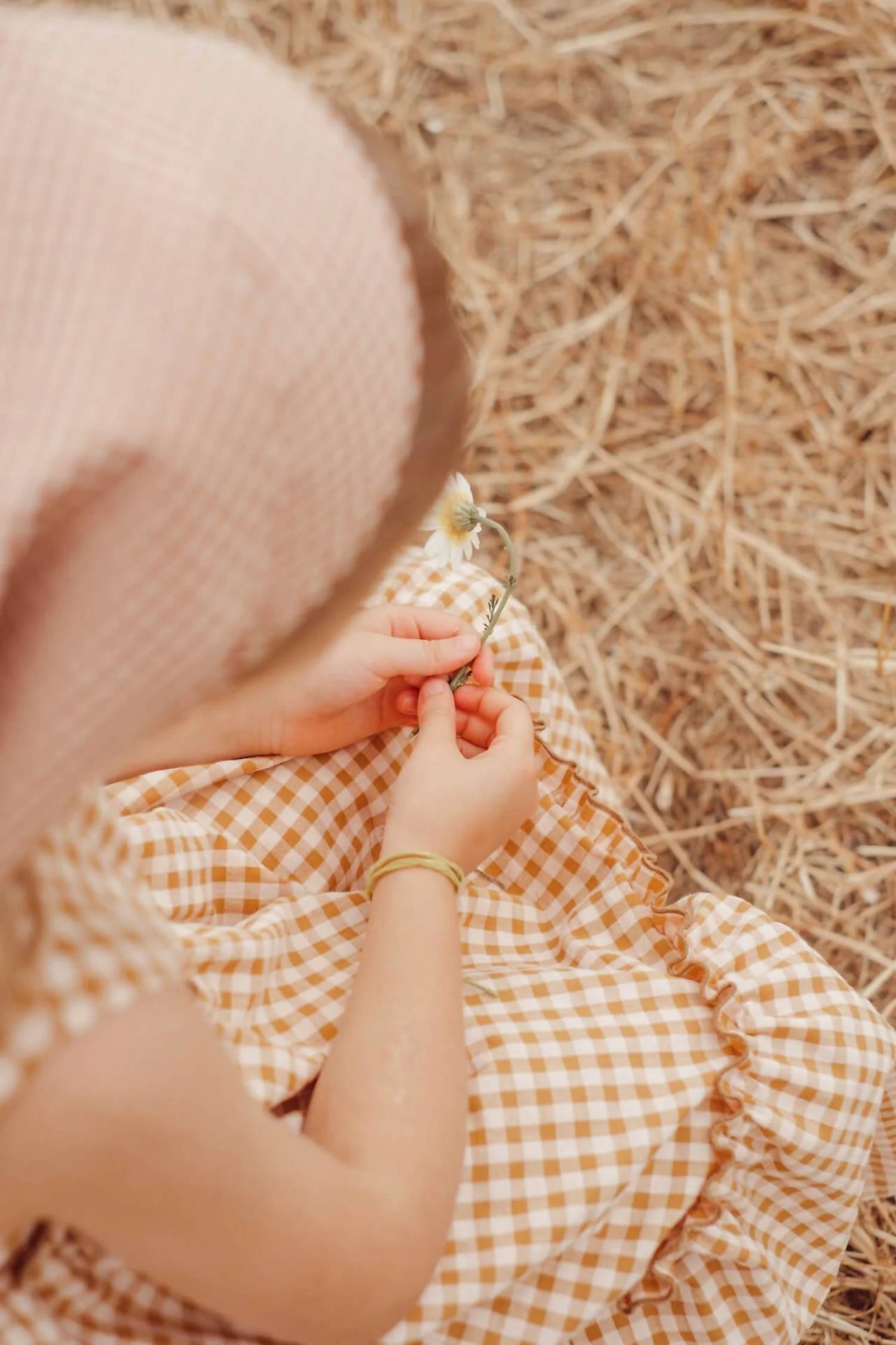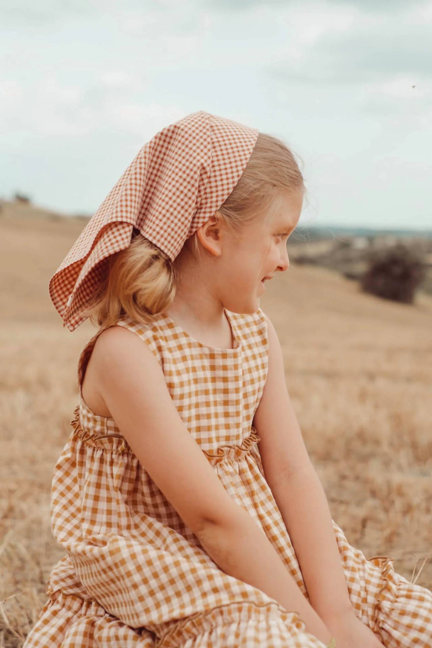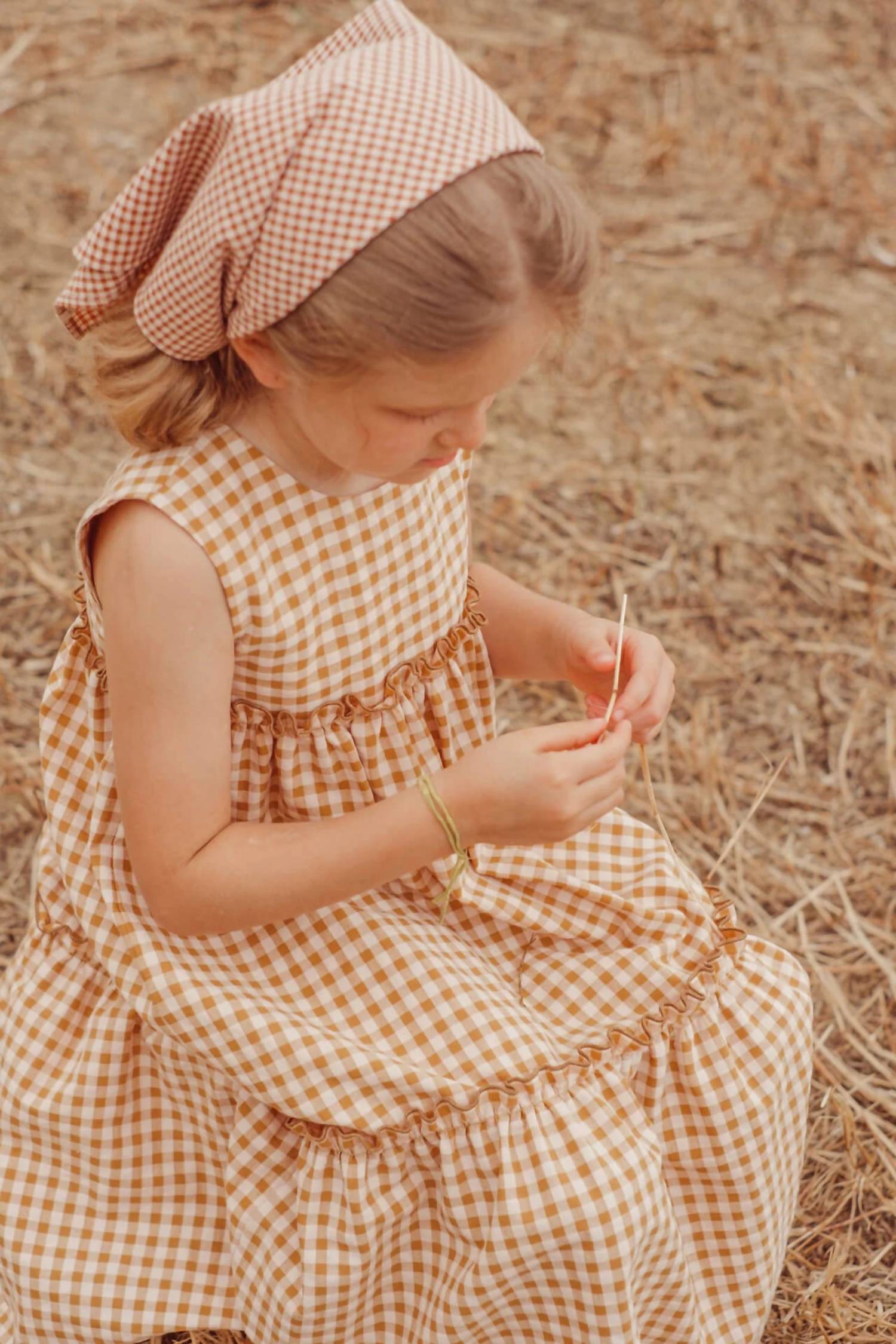 Очаровательное платье макси горчичного цвета, идеально подходящее для повседневных случаев. Это платье в клетку с очаровательными оборками на груди и по низу застегивается на одну пуговицу сзади. Платье изготовлено в Португалии из смеси 60% хлопка и 40% переработанного полиэстера и соответствует стандарту Oeko-Tex 100. Ручная стирка.