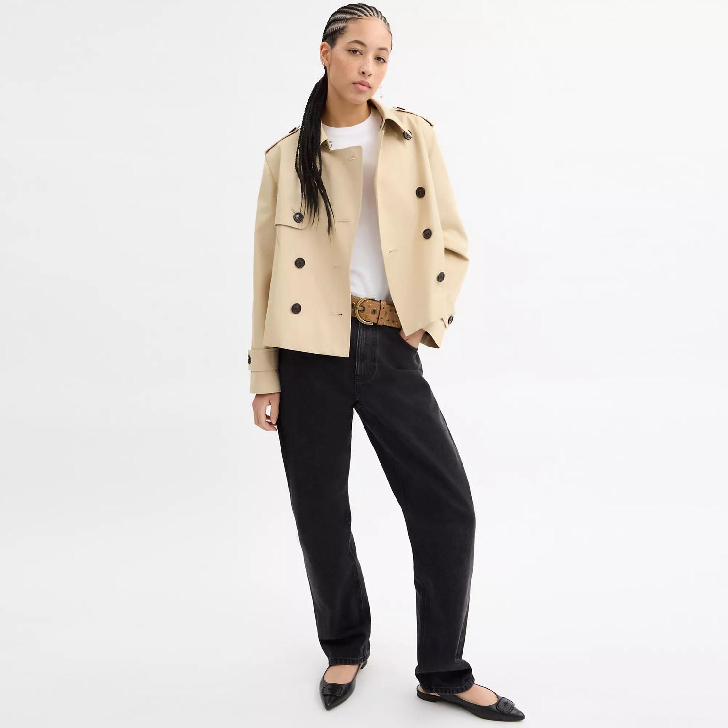 70% хлопок, 30% полиэстер. Подкладка корпуса: 58% полиэстер, 42% вискоза. Подкладка рукавов/обтачка/подкладка карманов: 56% полиэстер, 44% вискоза. Застежка на пуговицы. Накладные карманы. Длина: 22 см. Сухая чистка. На модели: рост 6 футов 2 дюйма (188 см), обхват груди 37 футов (94 см), обхват талии 28 футов (71 см), обхват бедер 28 футов (71 см). Размер S. Короткий тренч - бежевый, размер L.