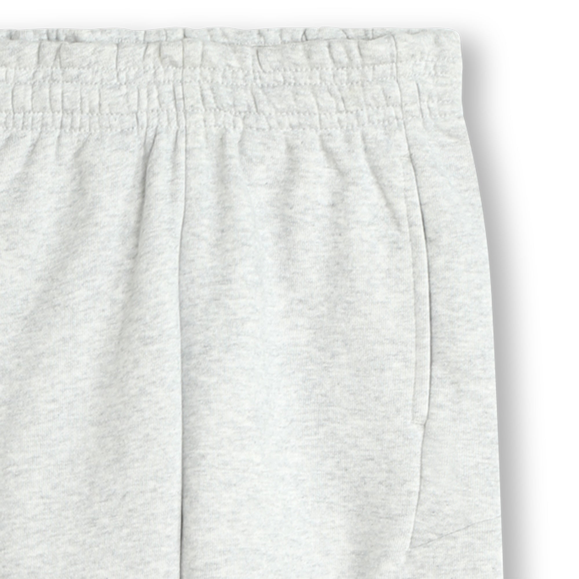 Серые джоггеры для мальчиков от BOSS. Изготовлены из мягкого хлопкового трикотажа средней плотности. На одной штанине - логотип бренда из черной резинки. Двойные боковые карманы. Эластичный пояс и фирменный шнурок обеспечивают удобную посадку.