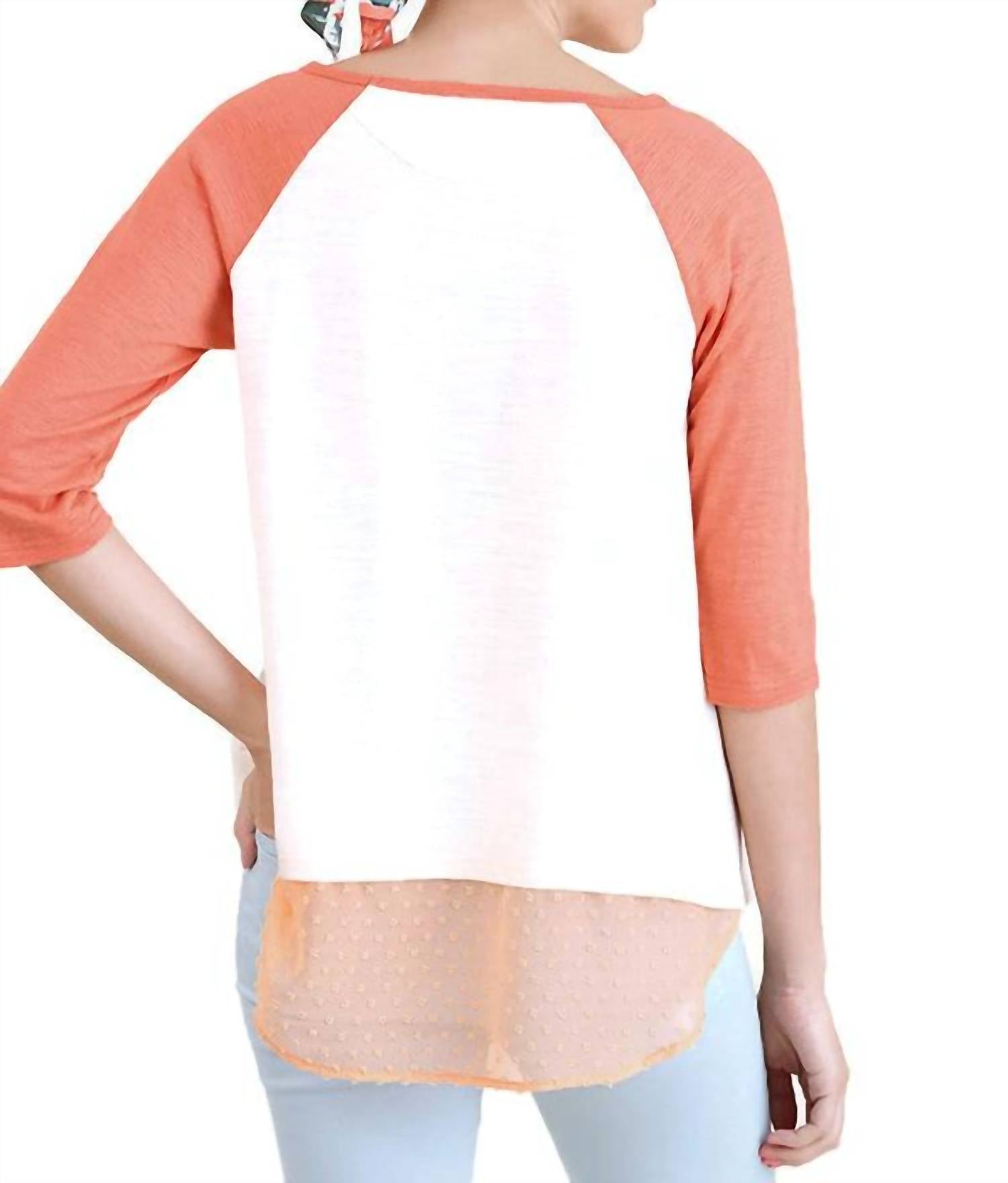 Топ с рукавами реглан от Umgee персикового цвета станет очаровательным дополнением к вашему гардеробу и идеально подойдет для повседневного выхода. Этот топ с рукавами реглан три четверти и А-образным силуэтом выполнен из смеси полиэстера и хлопка. Вырез горловины "лодочка" и удобная застежка на липучке, а также нагрудный карман и асимметричный подол для создания стильного образа. Уход за топом прост: ручная стирка или химчистка - залог его качества.