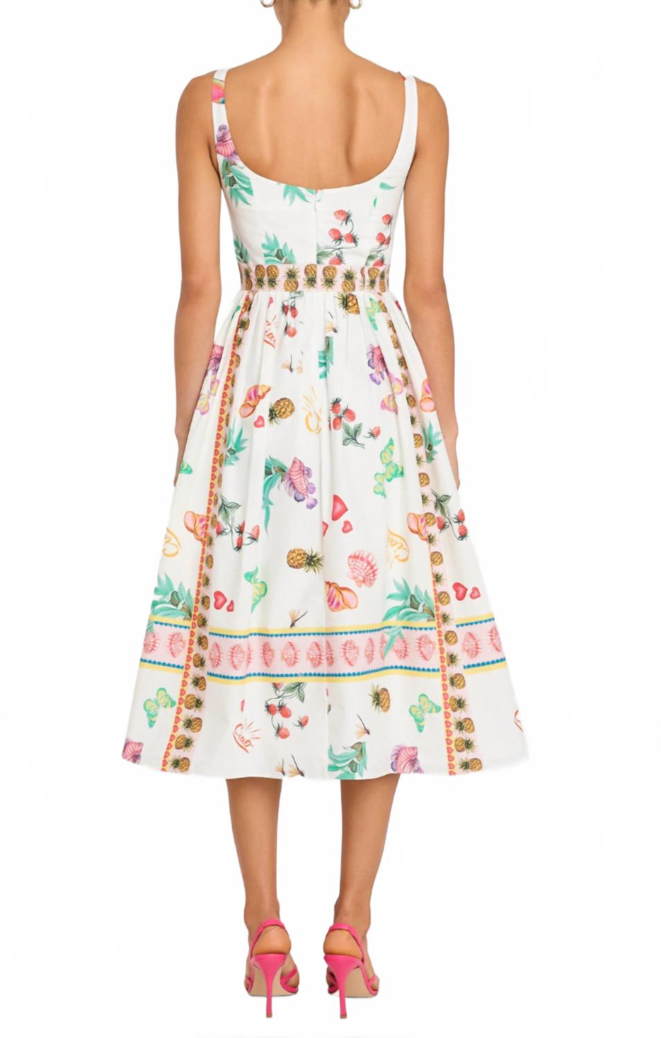 Платье миди настолько универсально, что варианты его ношения безграничны. Дополните свой летний образ платьем миди Santorini от Amanda Uprichard с очаровательным принтом «Открытка». Это платье без рукавов, выполненное из 100% хлопкового поплина с принтом, имеет юбку со сборками и высокой талией, а также А-образный силуэт, который идеально подчеркивает фигуру. Застежка - простая молния по центру спинки. Платье полностью на подкладке для дополнительного комфорта. Уход: ручная стирка, сушить в разложенном виде на горизонтальной поверхности.
