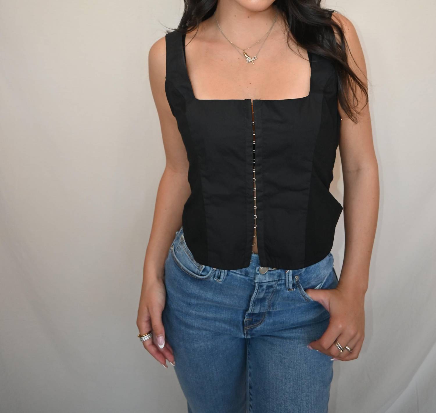 Продемонстрируйте немного своей красоты в этом милом и непринужденном укороченном топе. Приготовьтесь к тому, чтобы ваш стиль стал еще более изысканным с корсетом Poplin Corset от GOOD AMERICAN. Этот однотонный черный укороченный топ с эффектным квадратным вырезом тщательно изготовлен из 100% хлопка для комфорта и воздухопроницаемости. Корсет без рукавов, обладающий элегантным силуэтом, застегивается на крючок. Уход: машинная стирка в холодной воде для легкого ухода.