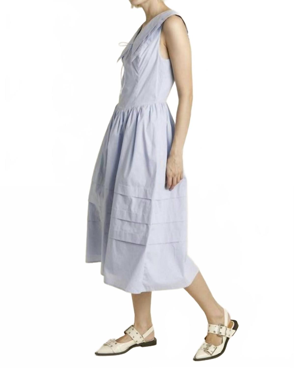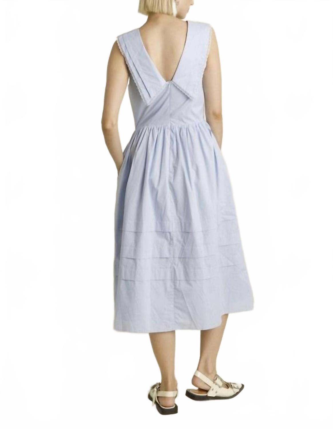 Просто добавьте шлепанцы или мюли, и все готово. Ощутите морской шарм платья-миди Sailor от Aureum игривого нежно-голубого цвета. Это женское платье А-силуэта выполнено из плотного хлопкового поплина без рукавов и украшено характерным воротником в морском стиле с отделкой люверсами. Платье создано для летнего отдыха и дополнено карманами в боковых швах и удобной застежкой-молнией сзади. Уход за этим стильным платьем: машинная стирка и сушка на веревке.