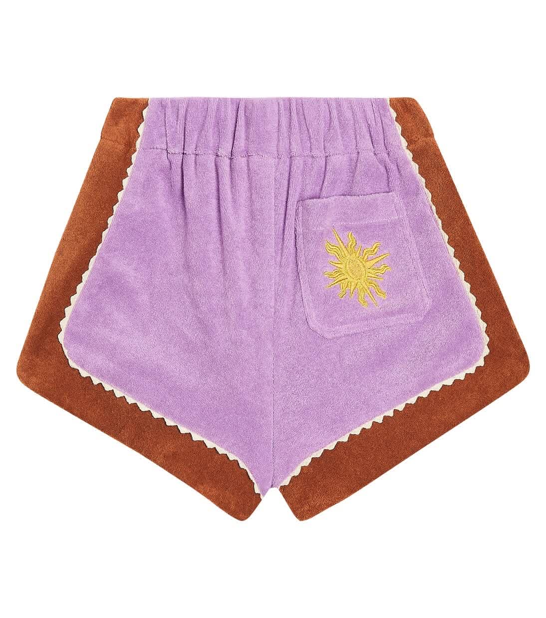 Трусики Zimmermann для девочек. Категория: Шорты. Цвет: фиолетовый. Шорты Zimmermann для девочек August Lila Cabana. Махровые шорты из смесовой хлопковой ткани с цветовыми блоками, отделкой крючком, короткими разрезами по бокам, закругленным подолом, накладным карманом сзади с вышитым мотивом и эластичным поясом на шнурке. Состав: 80% хлопок, 20% полиэстер.