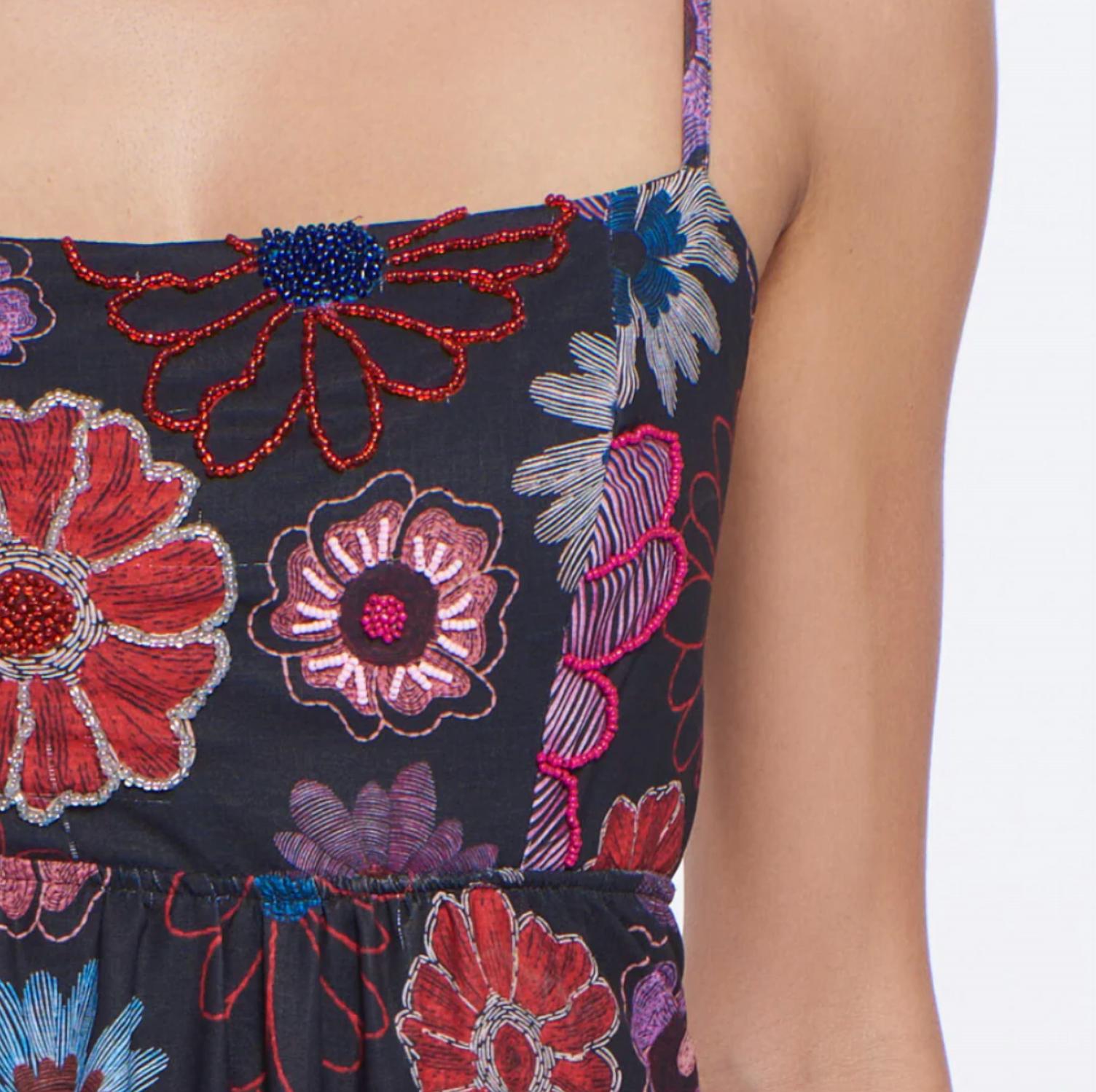 Платье макси, столь же милое, сколь и удобное. Откройте для себя платье макси Lori от Peixoto - потрясающее летнее изделие с пленительным черным ботаническим цветочным узором. Это платье А-силуэта в стиле бохо-шик с тонкими бретельками и квадратным вырезом, подчеркнутым вышивкой на груди и многоуровневой строчкой. Платье изготовлено из приятной хлопковой смеси (98% хлопка и 2% эластана) в Колумбии, что гарантирует высокое качество. Благодаря свободному крою и регулируемым бретелям, оно идеально подойдет для любой праздничной вечеринки или пасхального торжества, а отсутствие карманов позволяет сохранить элегантный силуэт.