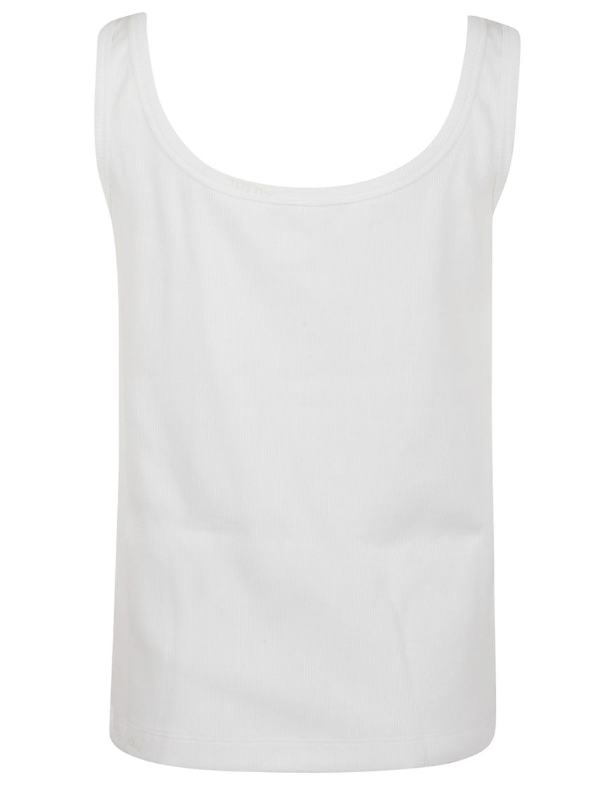 Marni представляет изысканную белую майку из роскошной смеси хлопка и эластана для максимального комфорта. Приталенный силуэт подчеркивает элегантный силуэт, дополненный глубоким вырезом и ребристой текстурой, что придает ей минималистичный шарм и делает ее незаменимой частью любого повседневного гардероба.