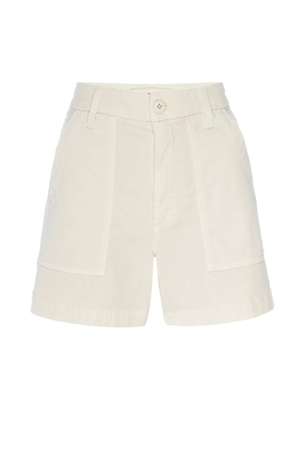 Эти шорты с высокой талией, изготовленные из прочной хлопковой смеси (70% хлопка, 29% лиоцелла и 1% эластана), обеспечивают удобную посадку и стильный вид в однотонном цвете Bone. Сделано с любовью в США. Они застегиваются на пуговицы и имеют удобные карманы. Инструкции по уходу: машинная стирка и сушка в стиральной машине.