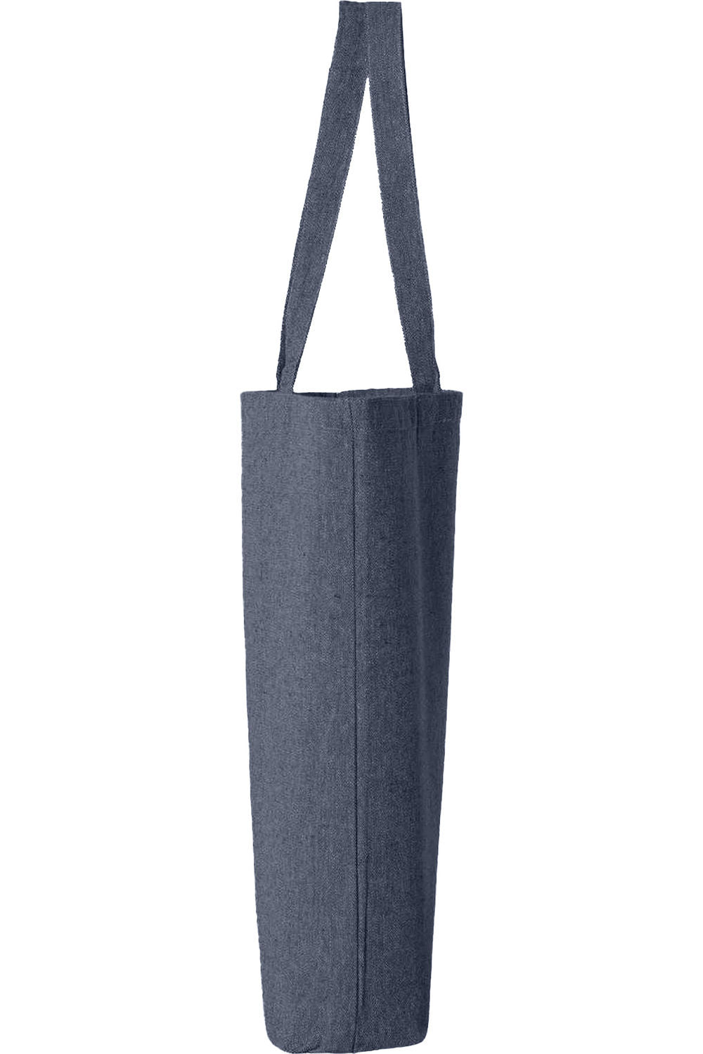 12 унций/ярд, 100% экологичный холст. Ручки из сетчатого холста длиной 20 дюймов, высота посадки 9 дюймов. Эта сумка изготовлена ​​из переработанных джинсов. По оценкам, из одной пары джинсов можно сделать 2 сумки.