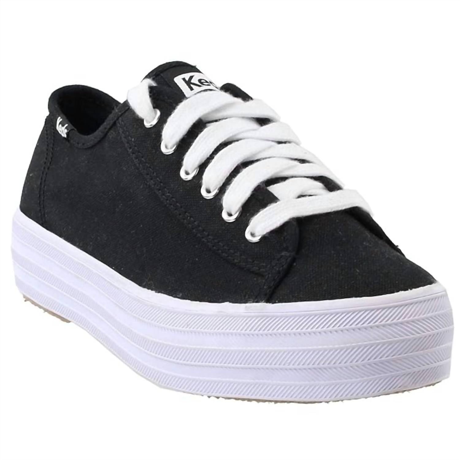 Милые, функциональные и удобные. Эти кроссовки отвечают всем требованиям. Выведите свой обувной стиль на новый уровень с женскими парусиновыми кроссовками Keds Triple Kick в классическом черно-белом сочетании. Эти модные кроссовки с круглым носком и плоской пяткой идеально дополнят ваш повседневный образ, добавив комфорта и стиля. Изготовлены из прочной резины для долговечности. Идеально подходят для женщин, которые ценят стиль и функциональность в своей обуви.