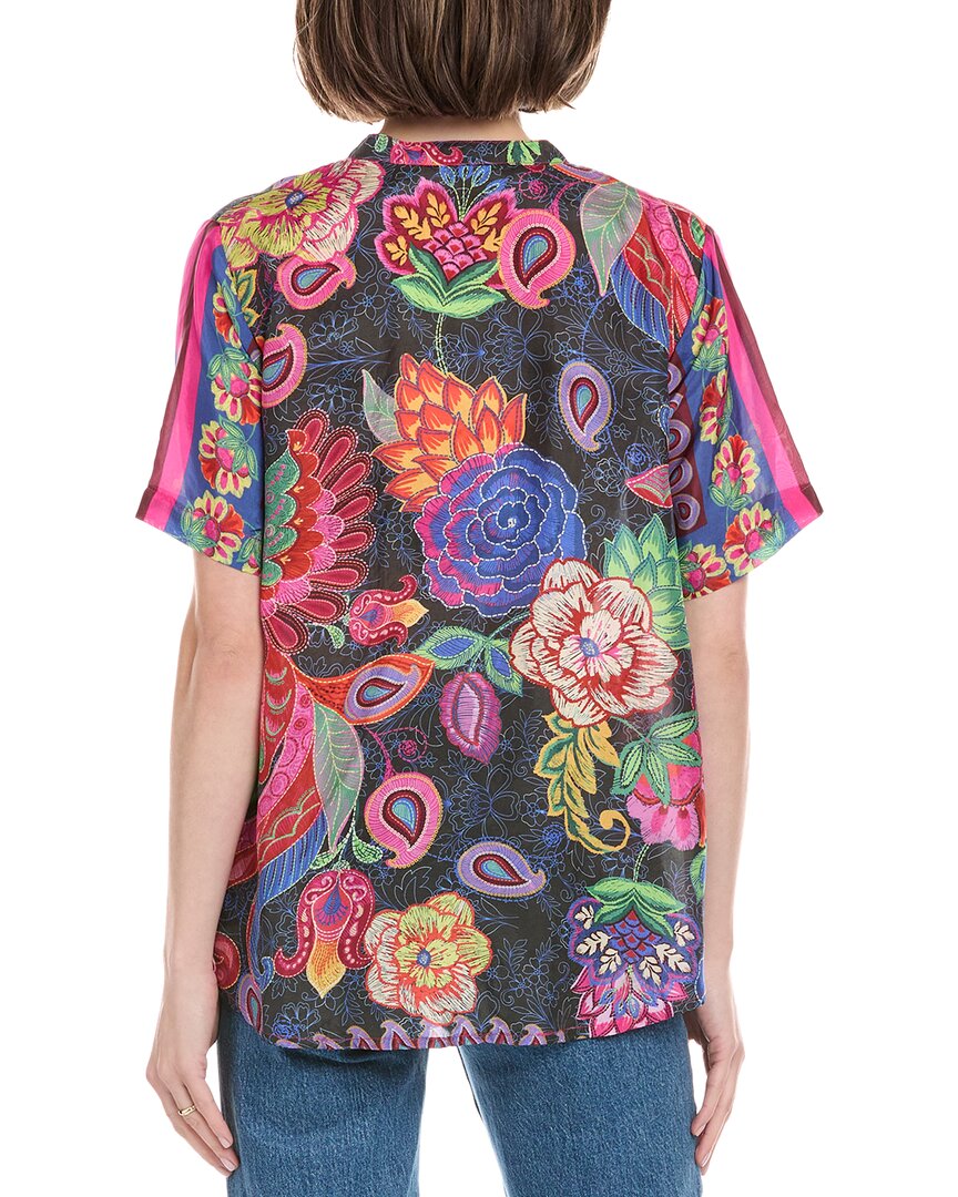 Представляем блузку Johnny Was Petite Preeti - уникальное изделие от известного бренда, известного своим эклектичным бохо-стилем с винтажными нотками. Принт Emberwing на шарфе добавит ярких красок и узоров в ваш гардероб. Эта свободная блузка с короткими рукавами и легкой баской по подолу создает изящный силуэт. Застежка на пуговицы спереди, 100% шелк. Длина этой импортной блузки составляет около 72 см от плеча до подола, что делает ее незаменимой вещью для любой модницы. Для достижения наилучшего результата рекомендуется только химчистка.