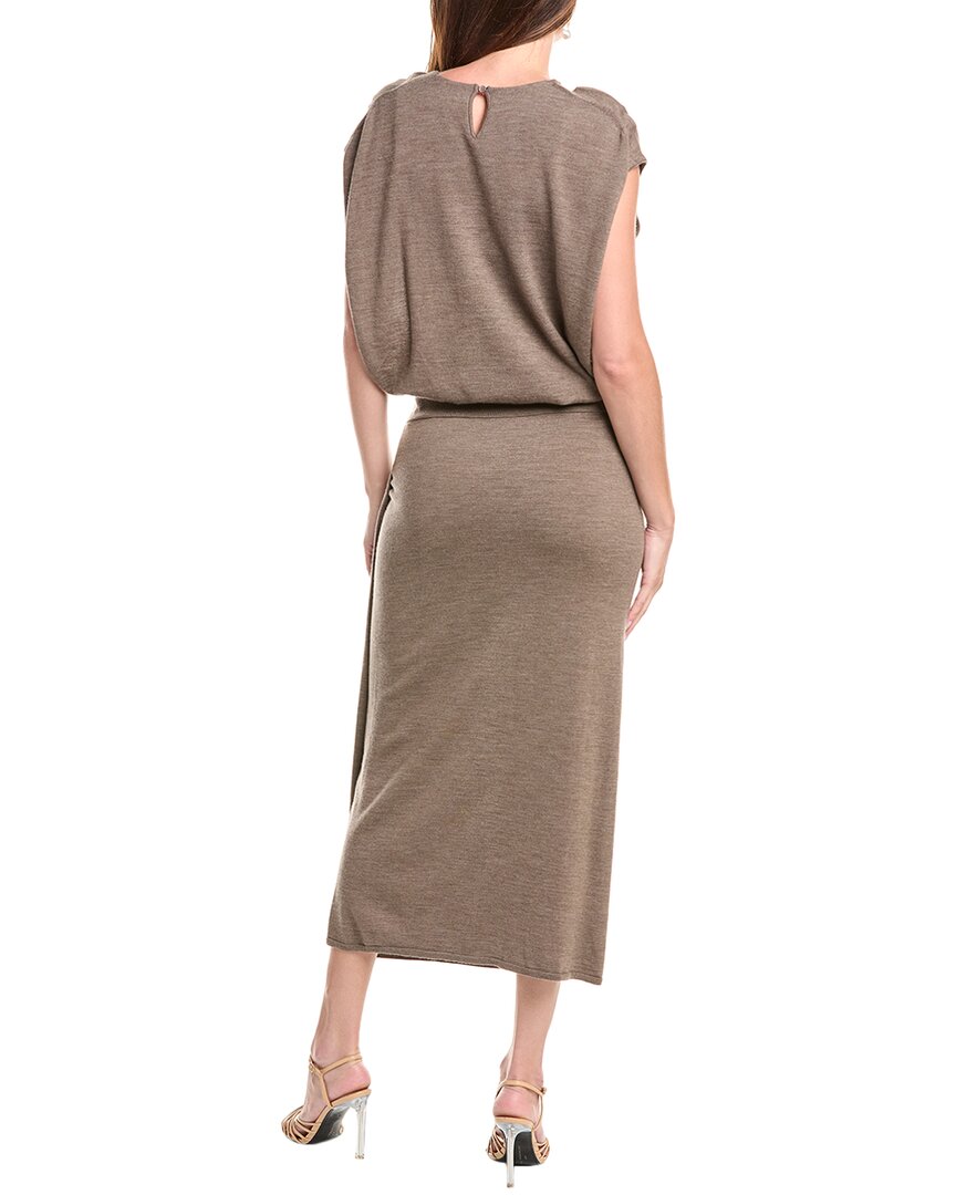Представляем потрясающее шерстяное платье-миди SIMKHAI Xion Draped Cape от люксового бренда SIMKHAI. Это элегантное платье - must-have для любой модницы. Цвет мокко-меланж добавляет изысканности, а плиссированный вырез, расширенные плечи и присборенная талия создают изящный силуэт. Платье из 100% мериносовой шерсти не только стильное, но и уютное и теплое. Это платье без застежек, идеально подходящее для любого случая, обязательно привлечет внимание. Не упустите эту прекрасную вещь, которая подлежит только химчистке и импортируется для вашего удобства. Рост модели 178 см, на ней размер S, длина от плеча до подола около 135 см. Приобретите шерстяное платье-миди SIMKHAI Xion Draped Cape уже сегодня!