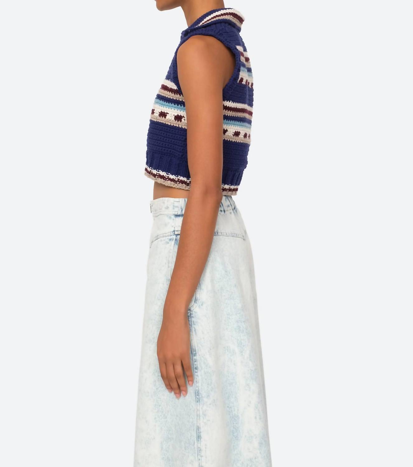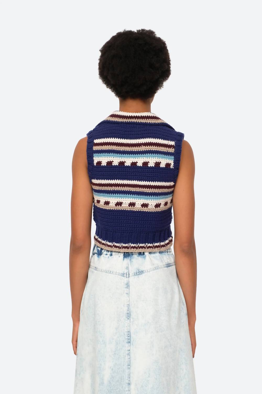 Этот жилет-свитер ручной работы Sutton имеет укороченный силуэт, V-образный вырез и воротник. Состав: 100% шерсть. Размер соответствует заявленному.