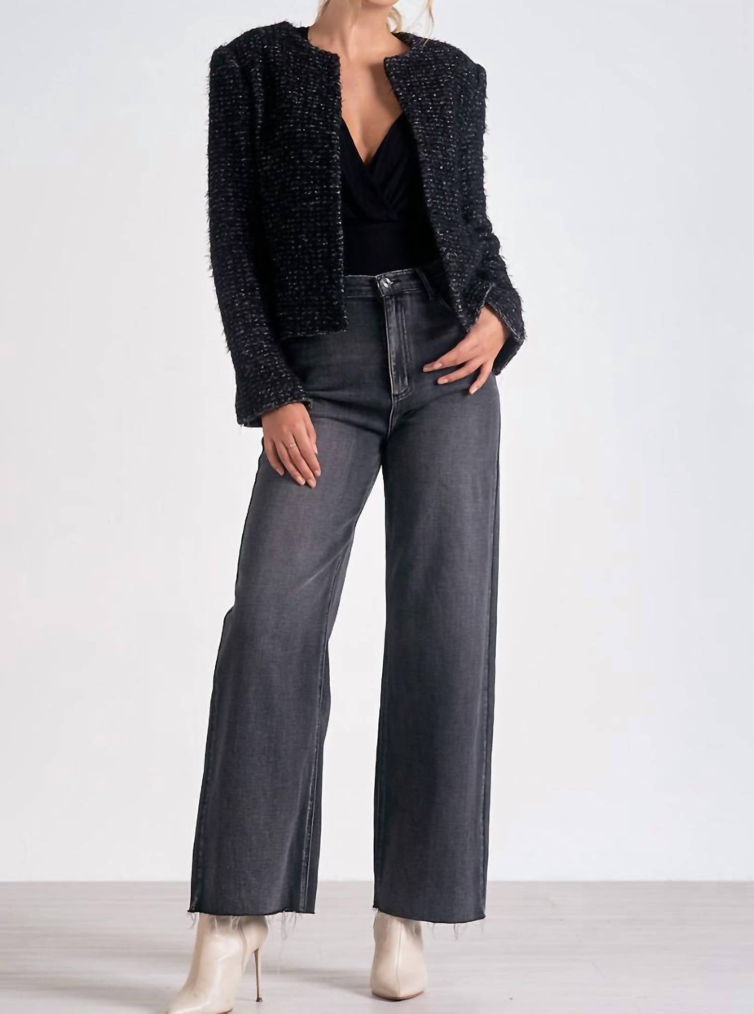 Усовершенствованная версия вашего любимого классического блейзера. Украсьте свой рабочий гардероб пиджаком Elan Chanel Inspired от ELAN - изысканной базовой вещью из черного и серебристого твида с роскошными акцентами из люрекса. Этот блейзер с длинными рукавами и укороченным структурированным кроем добавит изысканности любому образу. Изготовленный из богатой смеси (44% шерсти, 44% полиэстера, 10% акрила и 2% люрекса), он обеспечивает идеальную посадку по размеру и элегантный вид. Застежка: крючок и петелька. Уход: ручная стирка для достижения наилучших результатов.