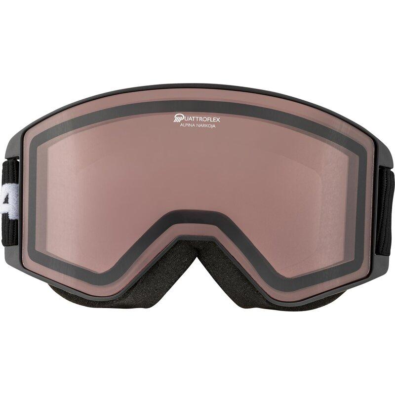 Элегантный дизайн, современный стиль. ALPINA NARKOJA — это горнолыжная и сноубордическая маска для тех, кто ценит чёткий обзор. Версия Q оснащена зеркальной линзой с высокой контрастностью и поляризационным фильтром. Особенно впечатляющей особенностью ALPINA NARKOJA является цилиндрическая двойная линза, которая обеспечивает идеальный круговой обзор и одновременно привлекает внимание окружающих. Линза также имеет покрытие Fogstop, предотвращающее запотевание. Маска разработана таким образом, чтобы под ней можно было носить корректирующие очки. Оправа Comfort Frame обеспечивает высокий уровень комфорта, а регулируемый ремешок надёжно фиксирует горнолыжную и сноубордическую маску на шлеме.