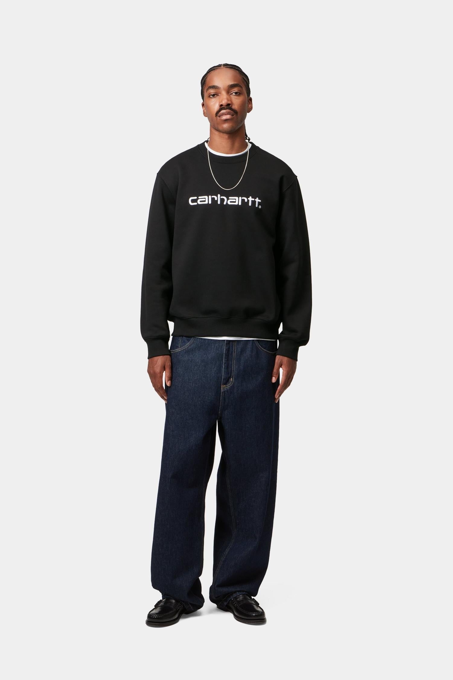 Толстовка Carhartt свободного кроя из плотного хлопково-полиэстерового трикотажа с начесом, напоминающим флис. Воротник, подол и манжеты отделаны резинкой. На груди вышит логотип Script.