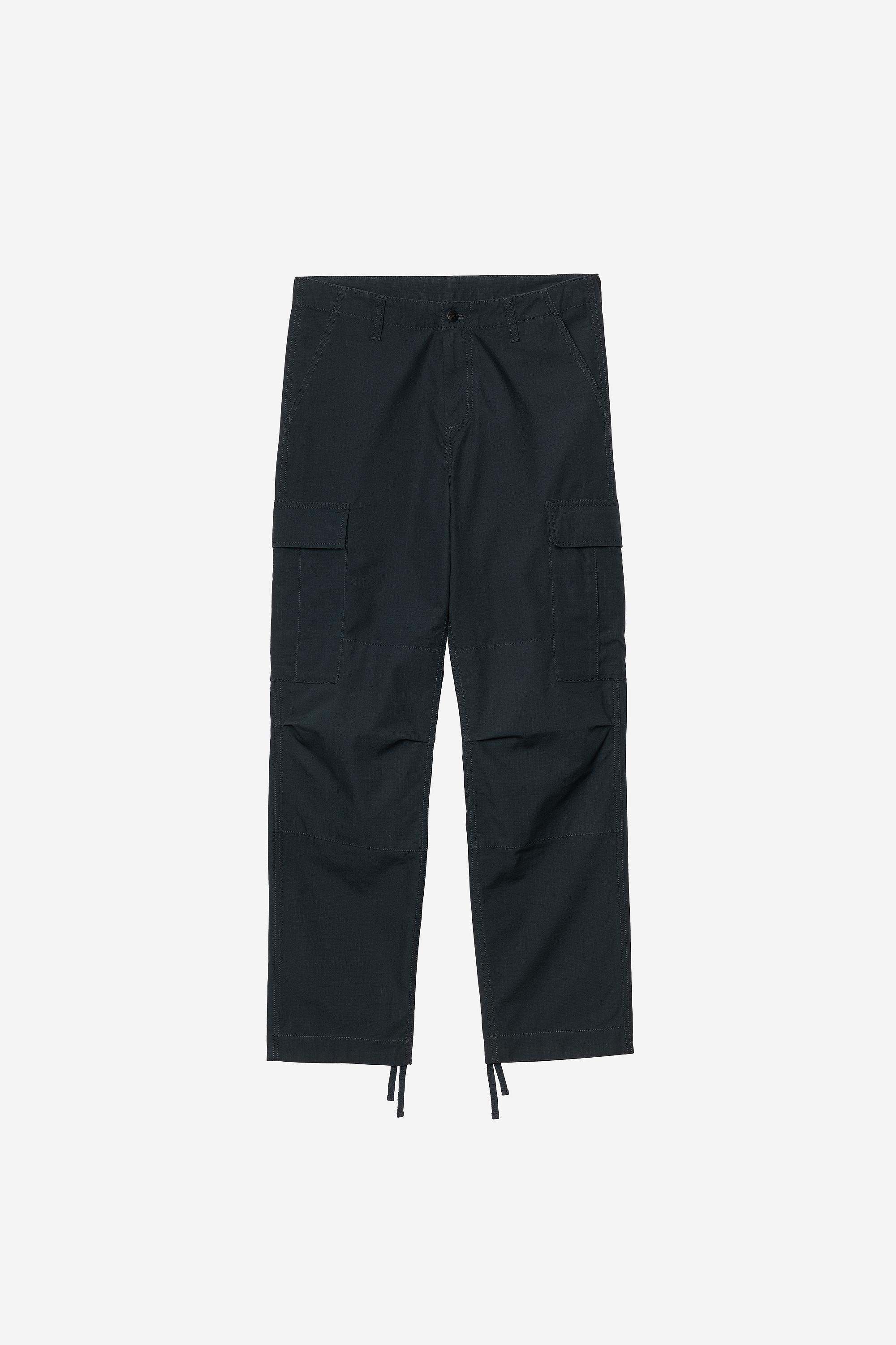 Брюки-карго Regular Cargo Pant изготовлены из хлопкового рипстопа Columbia средней плотности, который был промыт для большей мягкости. Модель имеет классический крой с заниженной талией и двухслойными вставками на коленях, что добавляет ей прочности. Множество карманов по всей длине отсылают к военному стилю, а завязки на манжетах позволяют регулировать посадку.