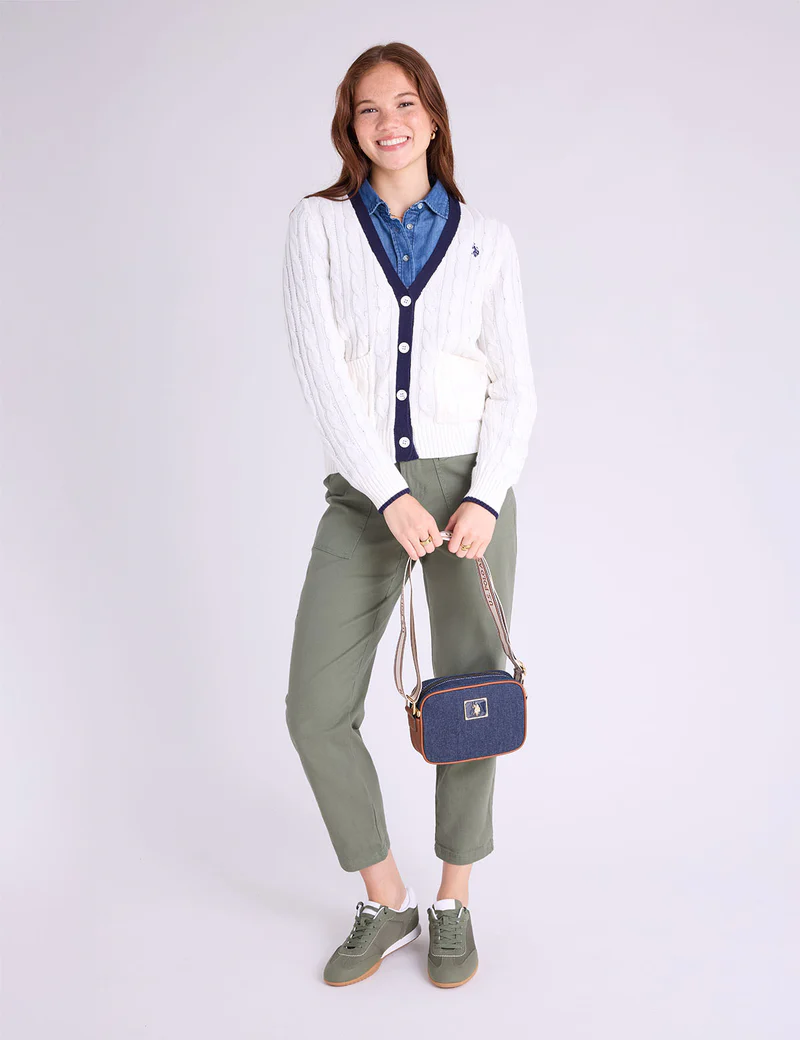 Изысканный и уютный кардиган Cable Button Front станет вашим незаменимым дополнением к элегантному повседневному стилю. Кардиган выполнен из классического узора «косы», имеет привлекательный V-образный вырез, яркую контрастную отделку и застежку на пуговицы спереди для универсальности. Ребристые манжеты и подол создают аккуратный, структурированный вид, а накладные карманы спереди добавляют функциональности, не жертвуя стилем. Этот кардиган, украшенный фирменным вышитым логотипом на груди, гармонично сочетает в себе традиции и современный шарм.