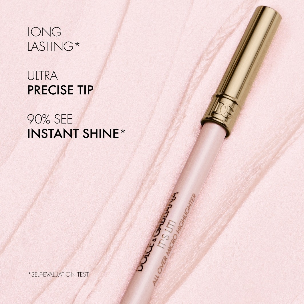 Dolce&Gabbana представляет инновационный микрохайлайтер «It's Lit!», который мгновенно добавляет сияющие акценты в макияж. Точный выкручивающийся наконечник 3,5 мм позволяет легко наносить кремовую гелевую текстуру, создавая интенсивное сияющее сияние всего одним движением. Это позволяет с впечатляющей точностью выделить отдельные области лица, такие как скулы, глаза, брови, нос или центр губ. Новый уровень хайлайтинга! Результаты самооценки: 95% подтверждают, что эффект сохраняется в течение всего дня. 90% отмечают мгновенное сияние уже после одного нанесения.