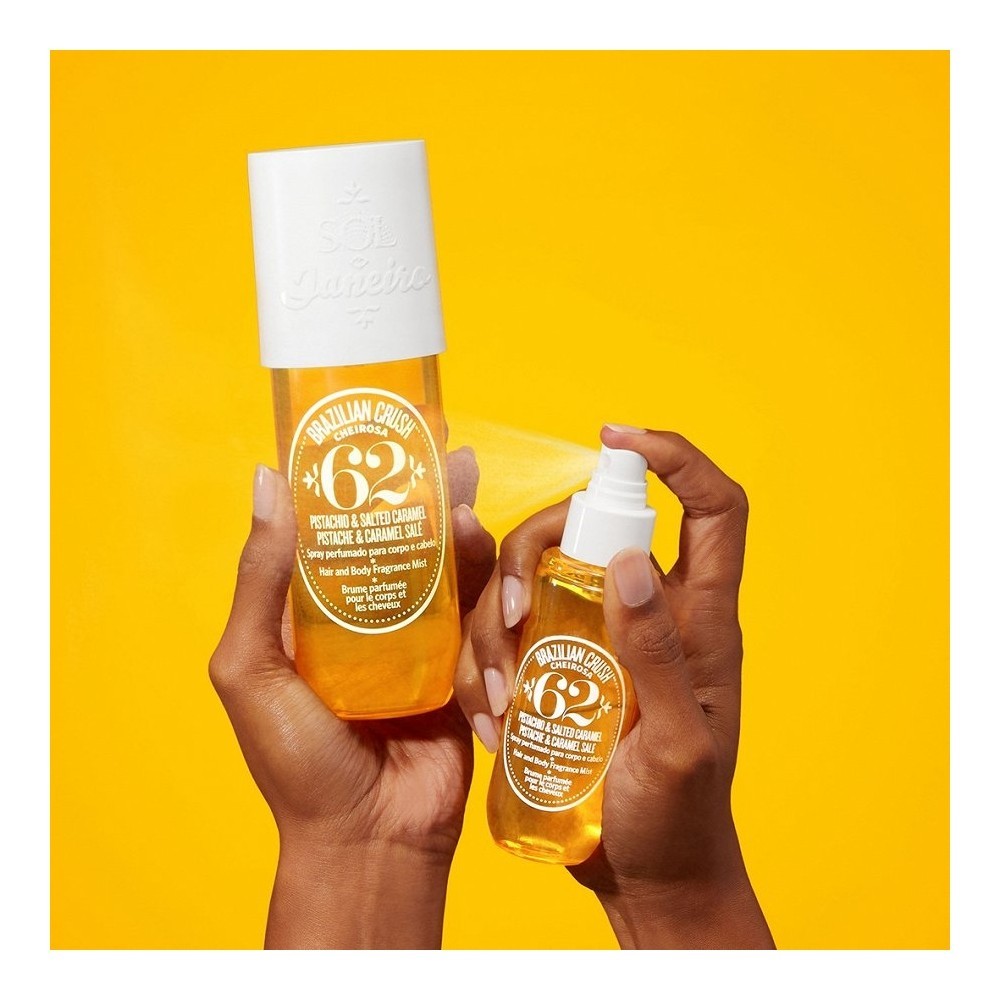 SOL DE JANEIRO Спрей для волос и тела Brazilian Crush Cheirosa 62 с ароматом фисташек и соленой карамели источает так называемую «cheirosa» — один из секретов бразильской красоты: бразильские женщины очаровывают своими соблазнительными ароматами от рассвета до заката. Однако тем, кто хочет привлечь к себе внимание, необходимо задействовать все свои чувства. А человека, который настолько уникален, что его невозможно забыть, зовут Brazilian Crush.