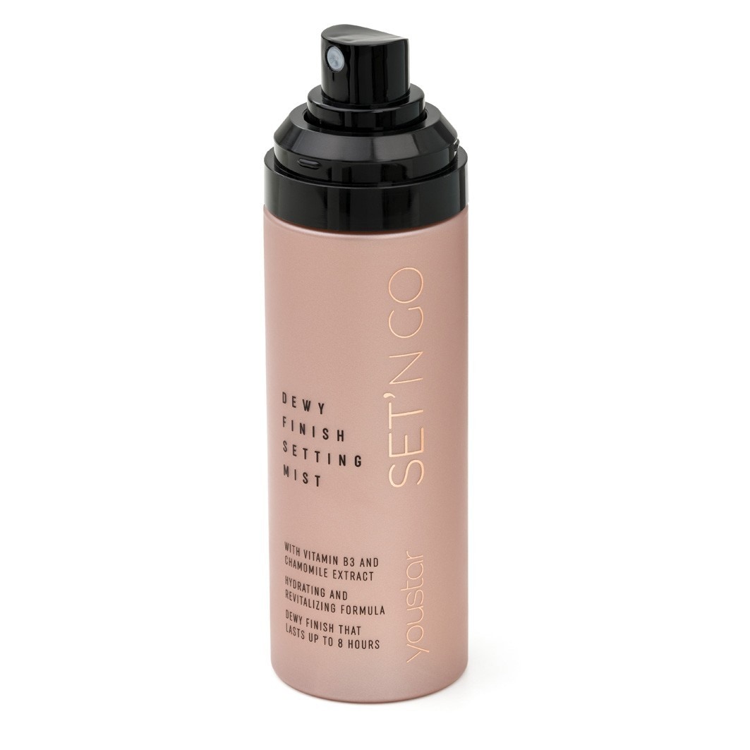 YOUSTAR Set'n Go Setting Spray обеспечивает яркий и стойкий макияж, создавая здоровый и естественный блеск. Обогащенная экстрактом цветков ромашки и комплексом витаминов B3, мягкая формула успокаивает и увлажняет кожу, увеличивает стойкость макияжа и делает его невероятно свежим надолго!