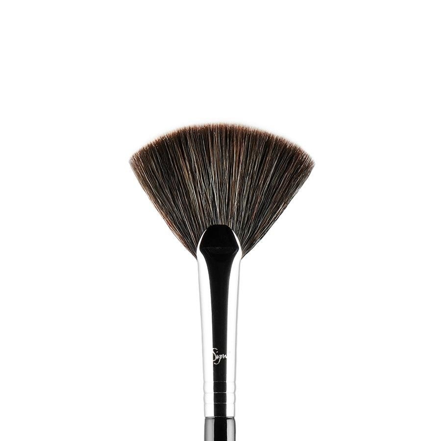 Ещё один незаменимый инструмент — эта короткая веерообразная кисть для макияжа с щетиной SigmaTech. Она используется для нанесения и растушевки кремообразных и рассыпчатых средств для создания сияющего эффекта.