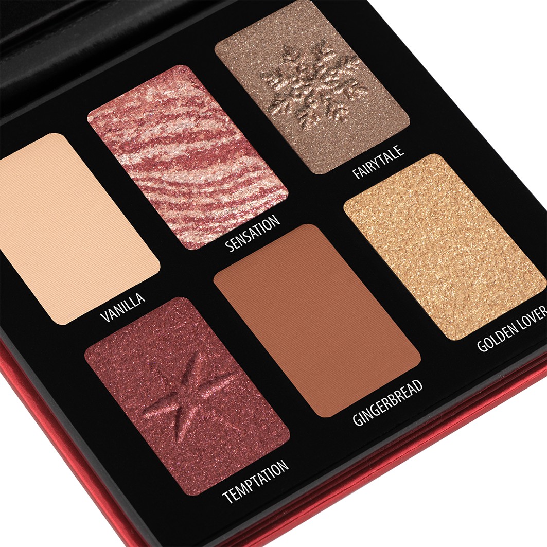 Палитра теней для век для гламурного образа с 6 идеально подобранными цветами: универсальные нюдовые, коричневые и ягодные оттенки, матовый и блестящий финиш.