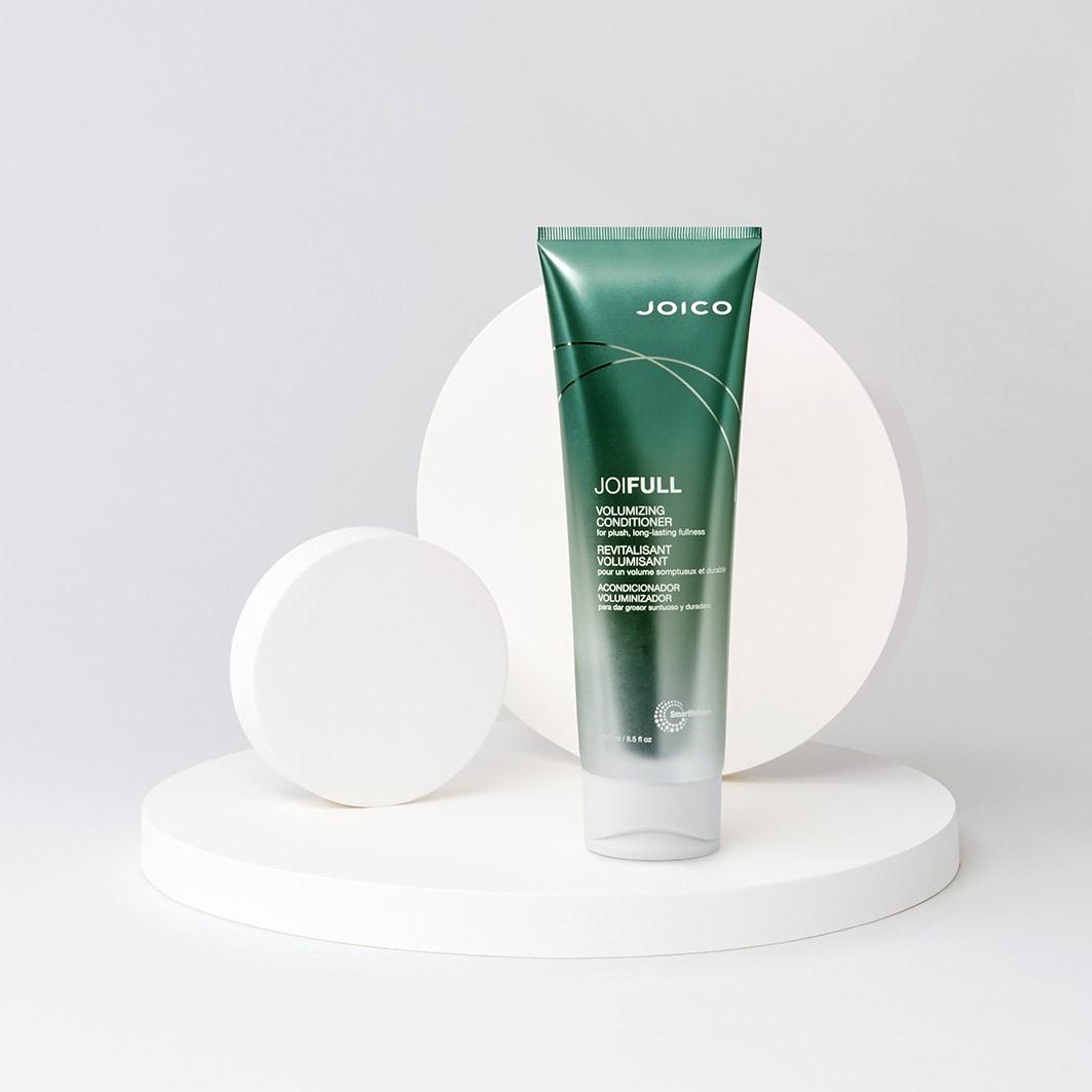 (*При систематическом использовании всех средств для придания объема JoiFull: шампуня, кондиционера и средства для укладки.)