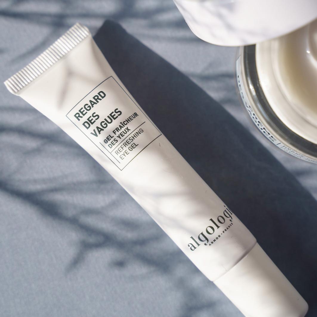 Освежающий гель для век обогащен бурыми водорослями и морскими активными ингредиентами, которые увлажняют, уменьшают отечность (бурые водоросли) и осветляют глаза.