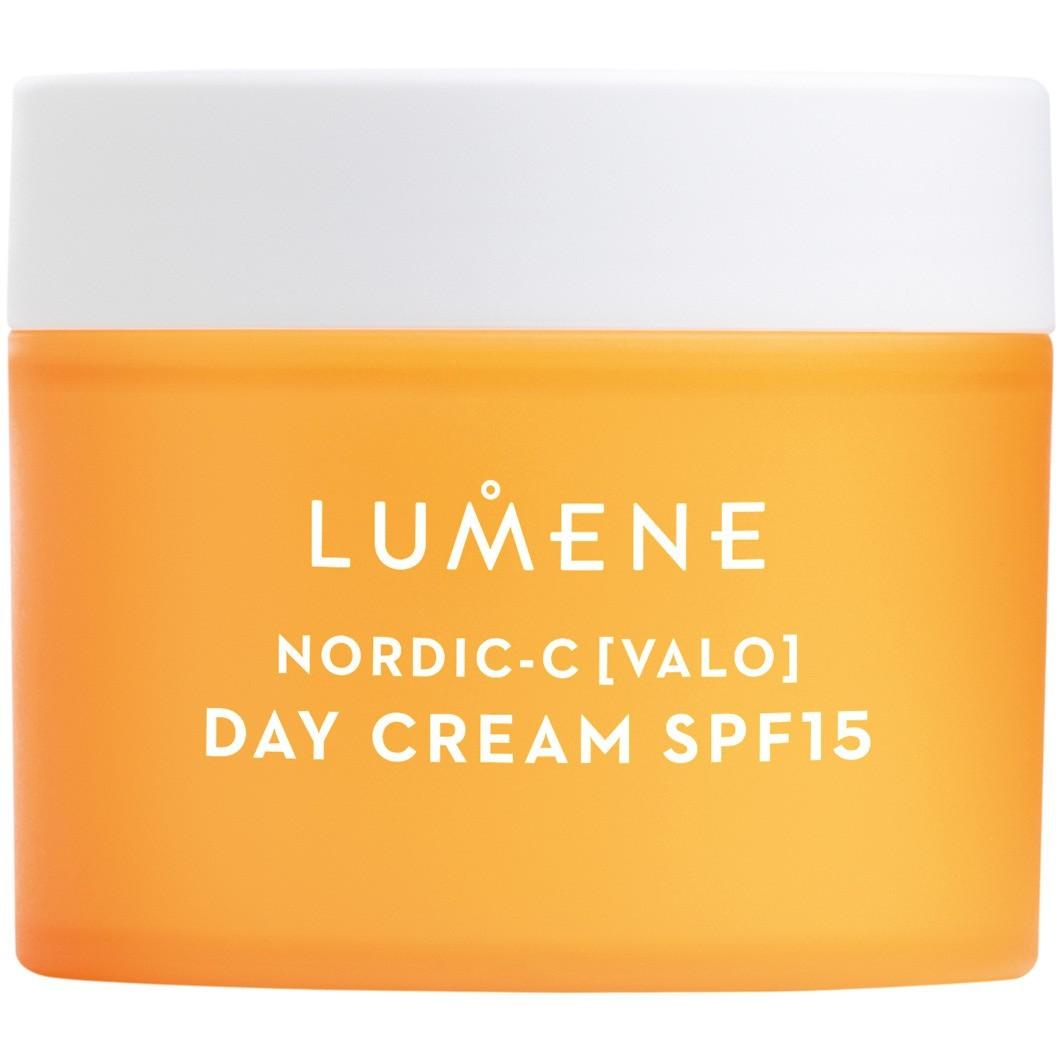 Дневной крем Lumene Nordic-C [Valo] Day Cream SPF15 увлажняет, усиливает сияние кожи и защищает от вредного воздействия лучей UVA / UVB (SPF 15). Освежающий крем содержит богатые антиоксидантами арктические водоросли, витамины C, B5 и E. А светоотражающие пигменты мгновенно придают коже красивое сияние.
