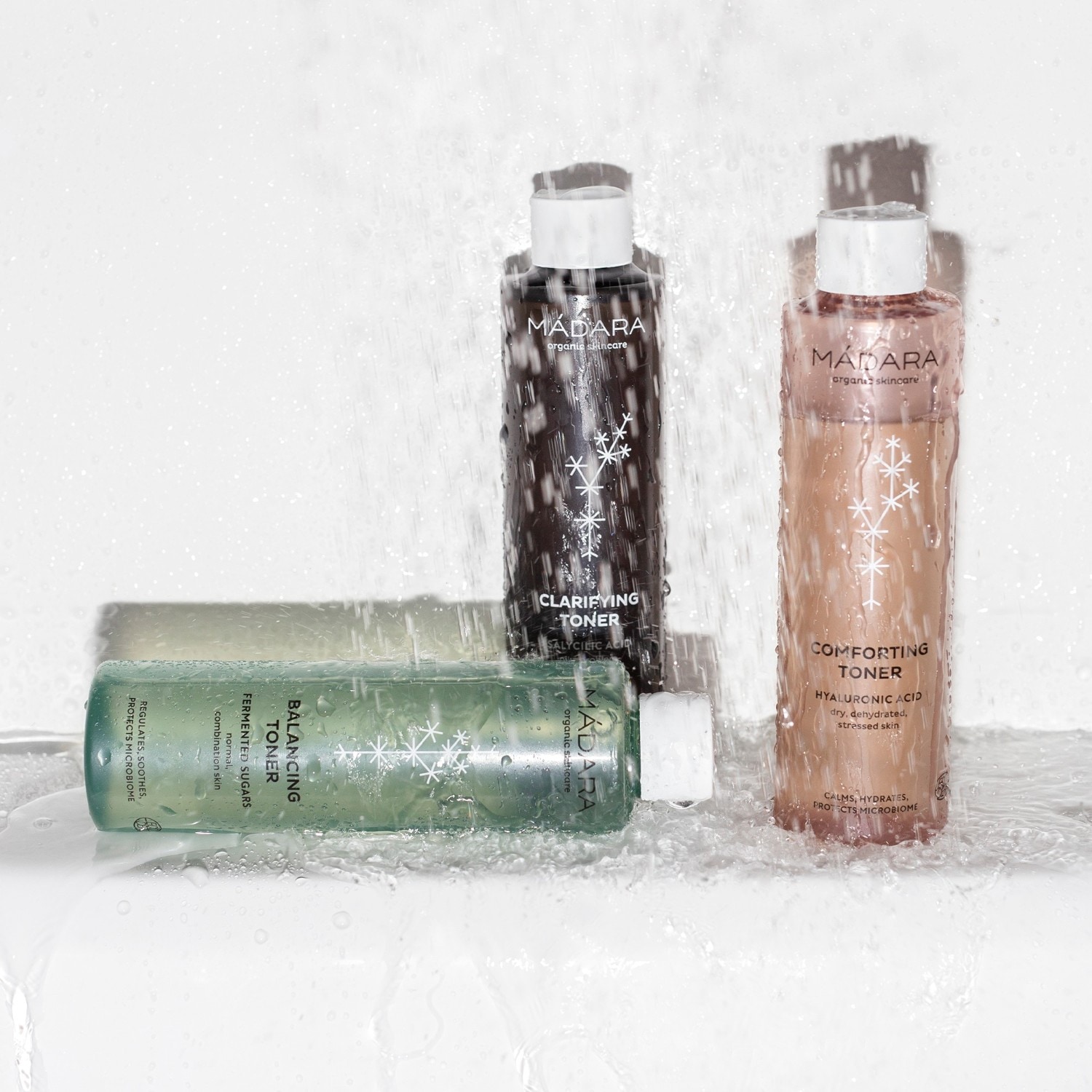 Используйте утром и вечером для очищения кожи, нанося с помощью ватного диска или распыляя руками. Затем нанесите увлажняющий крем MÁDARA.