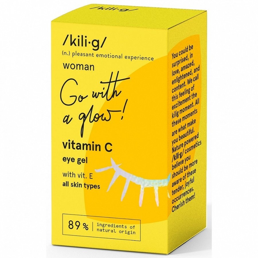 Разработан для того, чтобы сделать яркие моменты KILIG отраженными в глазах. Источник витаминов С и Е в ваших руках. Этот гель увлажняет кожу вокруг глаз, а витамин С обеспечивает хороший тонус и упругость кожи, помогая в ежедневной борьбе с видимыми морщинами. Наслаждайтесь более гладкой и яркой кожей вокруг глаз.