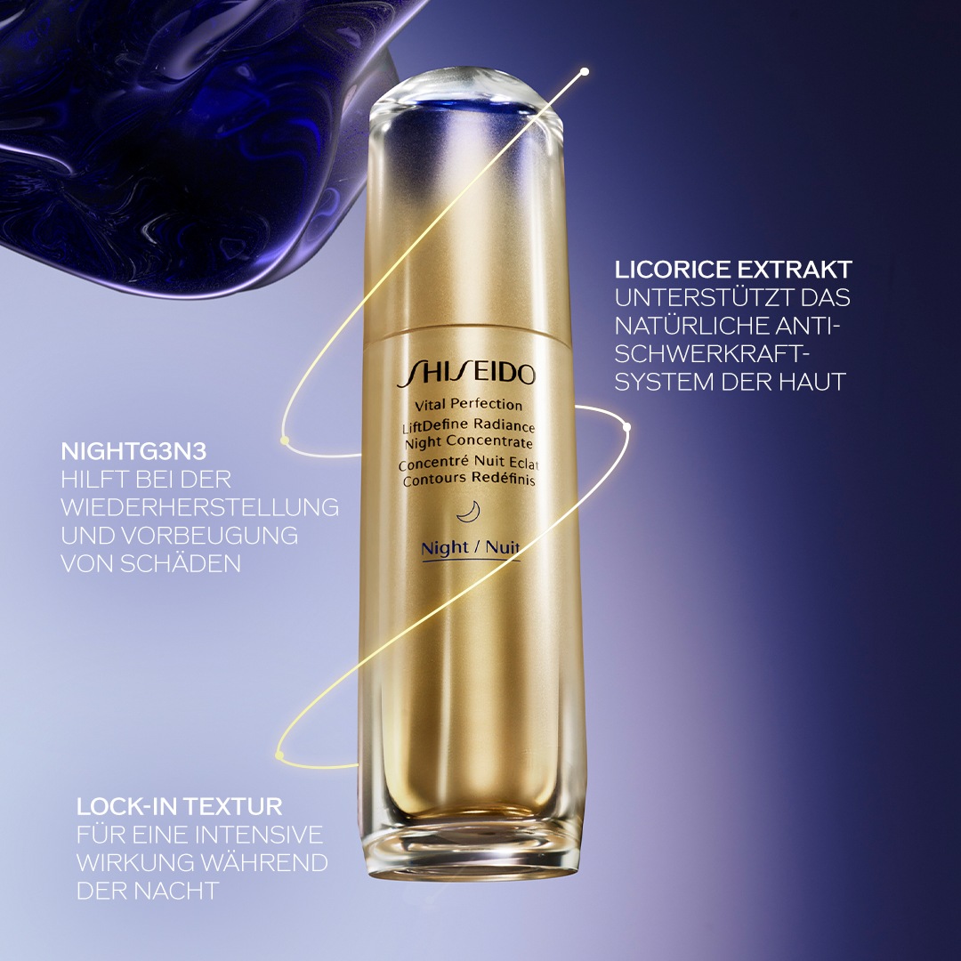 Завершите уход за кожей с помощью ночной сыворотки Shiseido Vital Perfection LiftDefine Radiance.