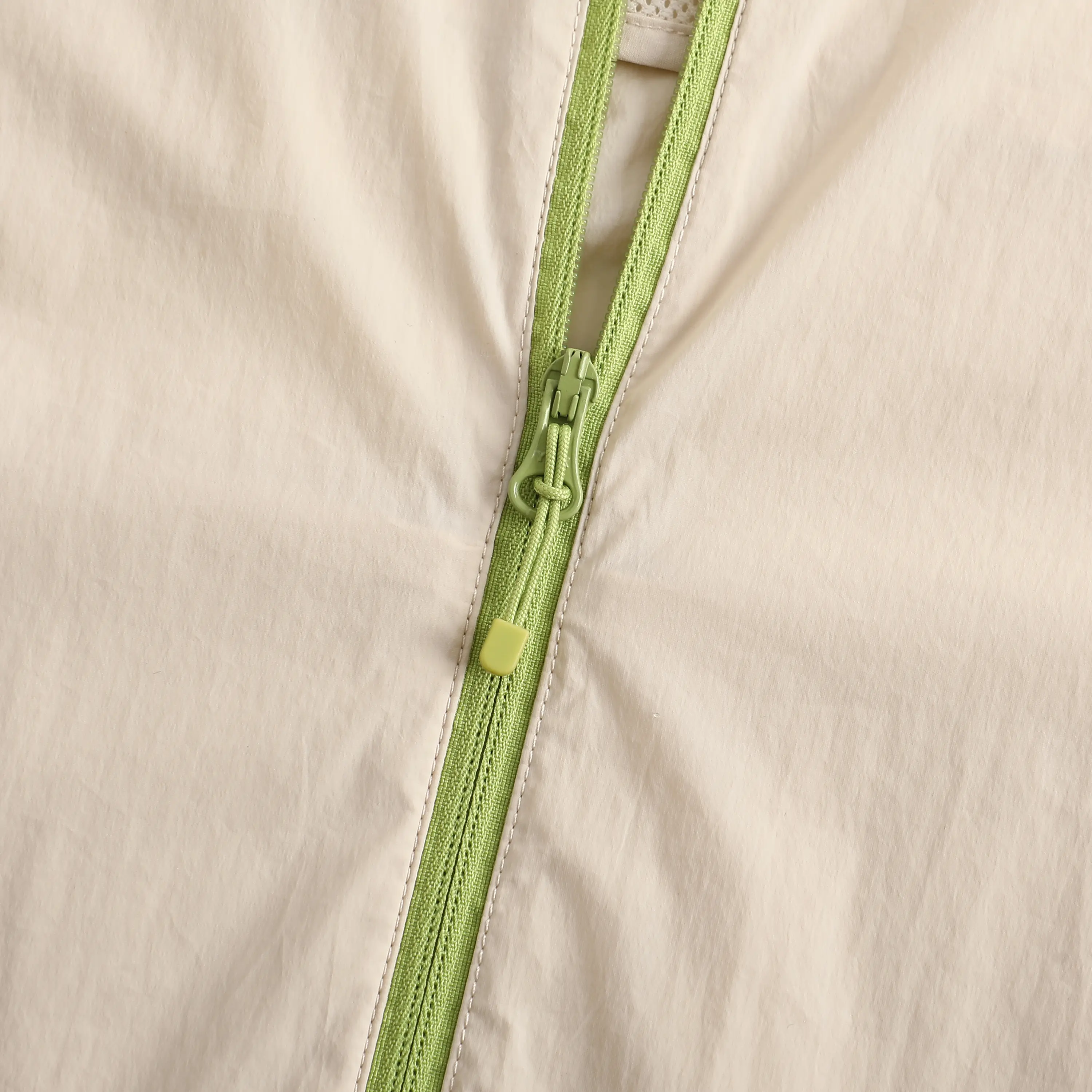 Что такое UPF? UPF, или фактор защиты от ультрафиолета, точно измеряет эффективность ткани в блокировании УФ-излучения. Чем выше значение UPF, тем выше защита. Например, при UPF 50 проникает только 1/50 УФ-лучей. На этикетках продуктов указано UPF50+ в соответствии с GB/T 18830-2009. Ткань прошла профессиональные лабораторные испытания в соответствии с соответствующими стандартами и имеет UPF 100+, с приложением отчета об испытаниях. Защита от УФ-излучения. Частицы диоксида титана добавляются в полимер, тщательно перемешиваются, а затем прядутся для создания устойчивой к УФ-излучению пряжи, которая поглощает и рассеивает УФ-лучи. Эта пряжа комфортна и экологична. Комфортна и ветроустойчива. Холодный ветер может значительно усилить ощущение холода! Если на улице температура 0°C, а ветер дует со скоростью 20 км/ч, вы будете чувствовать себя так же холодно, как при -10°C. Ветрозащитная ткань помогает уменьшить дискомфорт, вызванный эффектом охлаждения ветром. Эти ткани очень эффективно уменьшают потерю тепла (создавая барьер от ветра). Подол и капюшон регулируются шнурками. Водоотталкивающая ткань (в отличие от водоотталкивающей). Водоотталкивающая ткань не оставляет капель воды на ткани, обеспечивая водонепроницаемый эффект. Это предотвращает впитывание воды тканью, сохраняя лёгкость и тепло. Внешний слой ткани обработан водоотталкивающим средством. Водоотталкивающую обработку следует повторять на протяжении всего срока службы изделия (рекомендуется каждые 3 стирки). Система карманов: 2 кармана для рук на молнии. Удобный дизайн: на капюшоне есть отверстия для волос, поэтому даже если у девочки длинные волосы, ей не придётся беспокоиться о том, что ей некуда будет деть волосы, надевая этот капюшон.