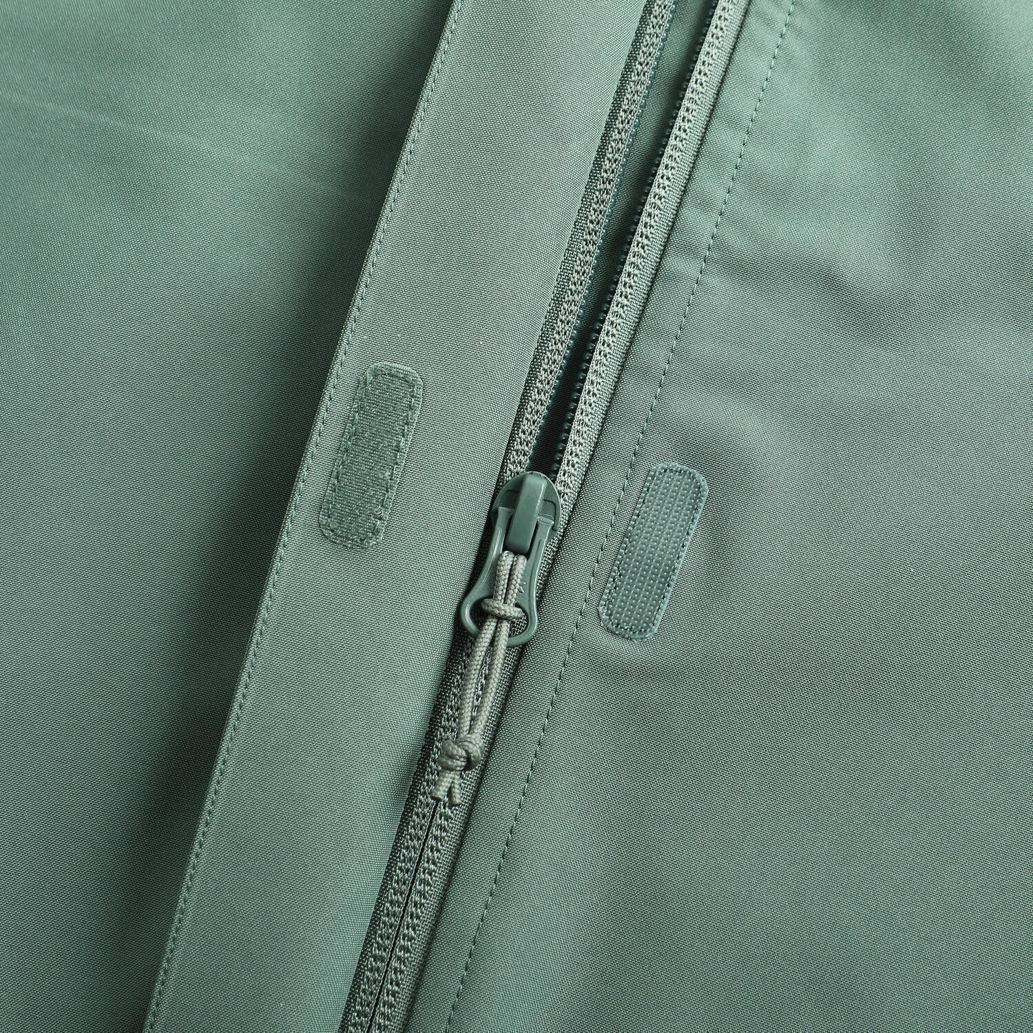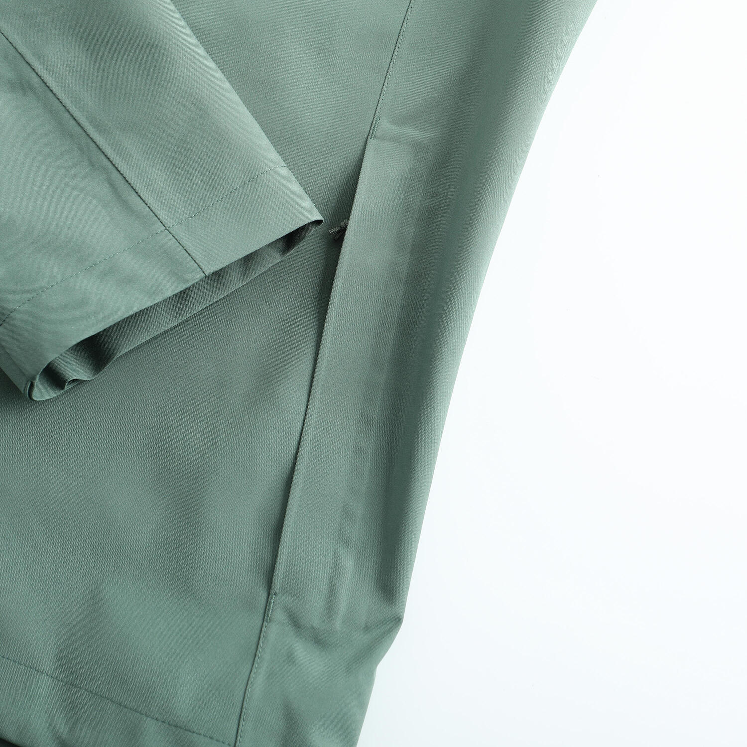 Она мягкая, легкая и дышащая. Сэндвич-конструкция состоит из 2,5 слоев. Мембрана под внешней тканью и внутренняя мембрана обеспечивают достаточную защиту. Мы используем это для создания этой легкой куртки. Водонепроницаемая ткань: Водонепроницаемые свойства ткани достигаются путем нанесения покрытия или добавления мембраны на поверхность. Единица измерения выражается в Шмерберах или H20 мм, что соответствует давлению водяного столба. Чем выше давление воды, тем более водонепроницаема ткань. Эта куртка имеет водоотталкивающее покрытие, соответствующее стандартам JIS 1092. Этот компонент может выдерживать давление воды 15 000 мм H20 (Шмербер), что эквивалентно давлению, оказываемому 15-метровым водяным столбом, до стирки. Мы тестируем куртку на водонепроницаемость в нашей лаборатории, имитируя дождливые условия, чтобы убедиться в ее соответствии этим стандартам. Эта одежда проходит испытание на водоотталкивающие свойства в течение 3 часов при 100 литрах воды на квадратный метр в час. Это испытание имитирует средние полевые условия горного шторма.