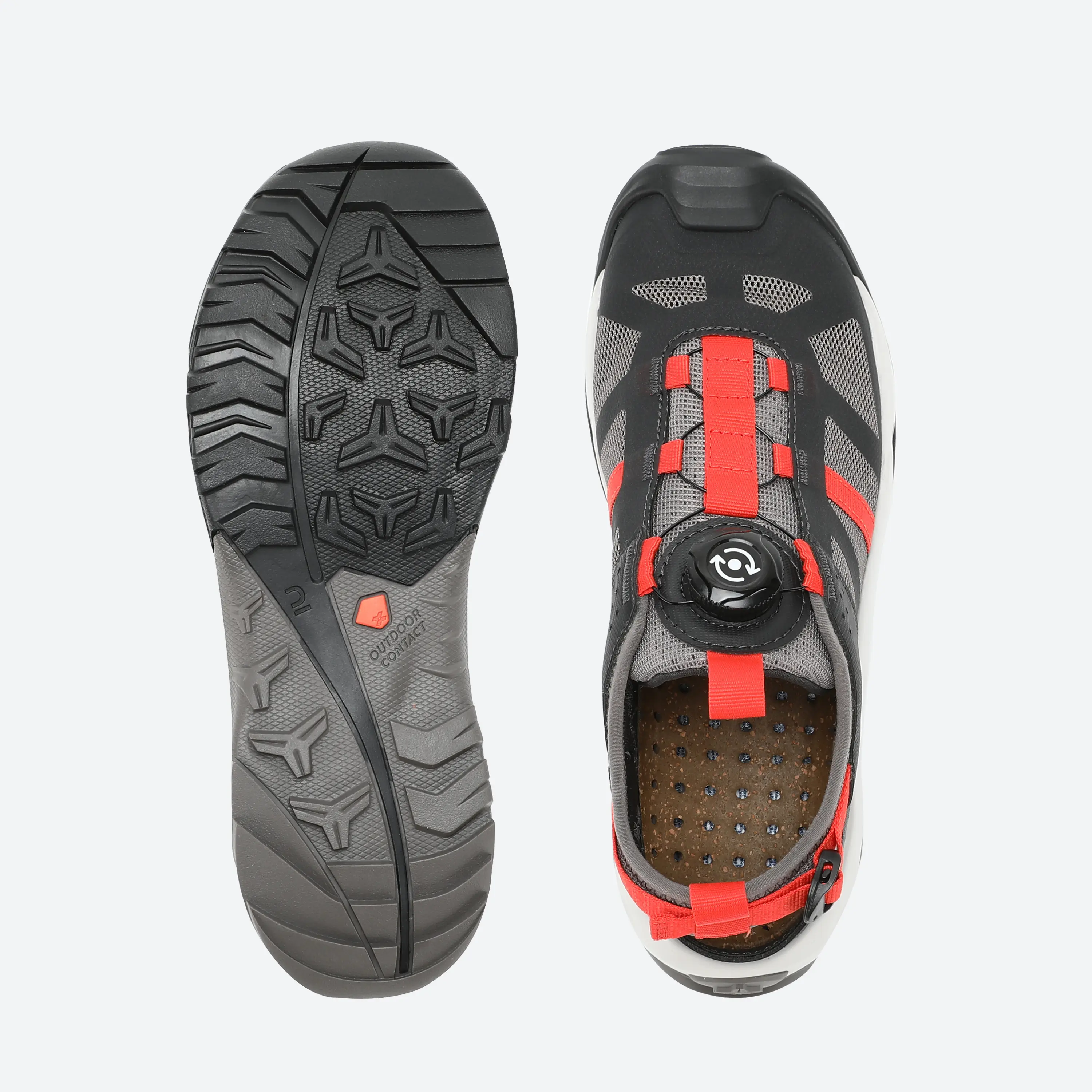 Материалы: Подошва: 50% винилацетат, 50% бутадиеновый каучук; Верх: 50% полиэстер, 40% термопластичный полиуретан; Основа: полиэстер: 10% полиуретан; Подкладка и стелька: 100% полиэстер. Тестирование: Глобальный дизайн-центр Quechua расположен в Пасси, Франция, у подножия Монблана, в окружении первозданной природы. Это место идеально подходит для встречи нашей команды дизайнеров и любителей активного отдыха. Эта модель была разработана совместно с нашей китайской командой и протестирована в Южном Китае, где разрабатывается Aqua Hike.