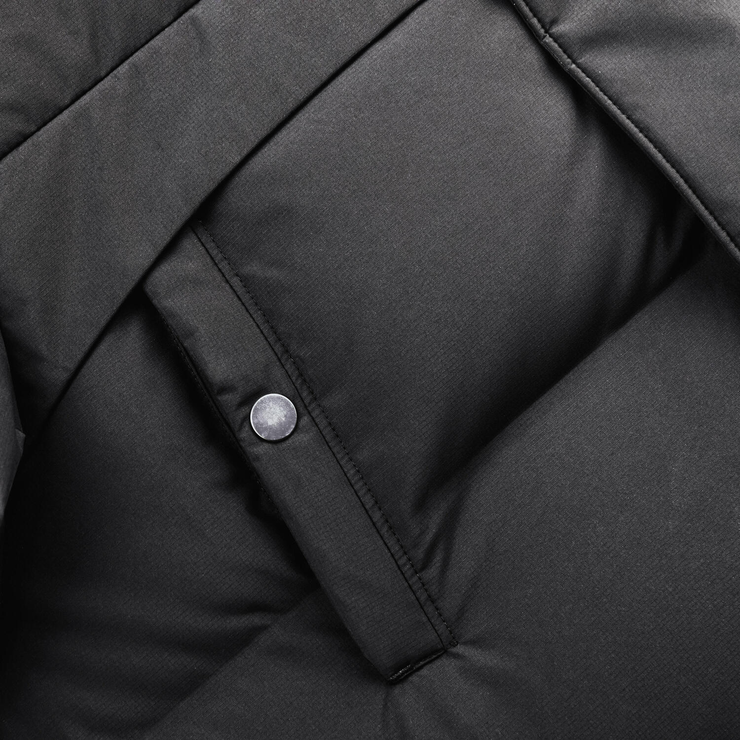 Материал Основная ткань 100% нейлон Основная подкладка 100% нейлон Пуховая подкладка 100% нейлон Наполнитель 75% серый утиный пух, 25% серое утиное перо Карман 91% полиэфирное волокно, 9% спандекс