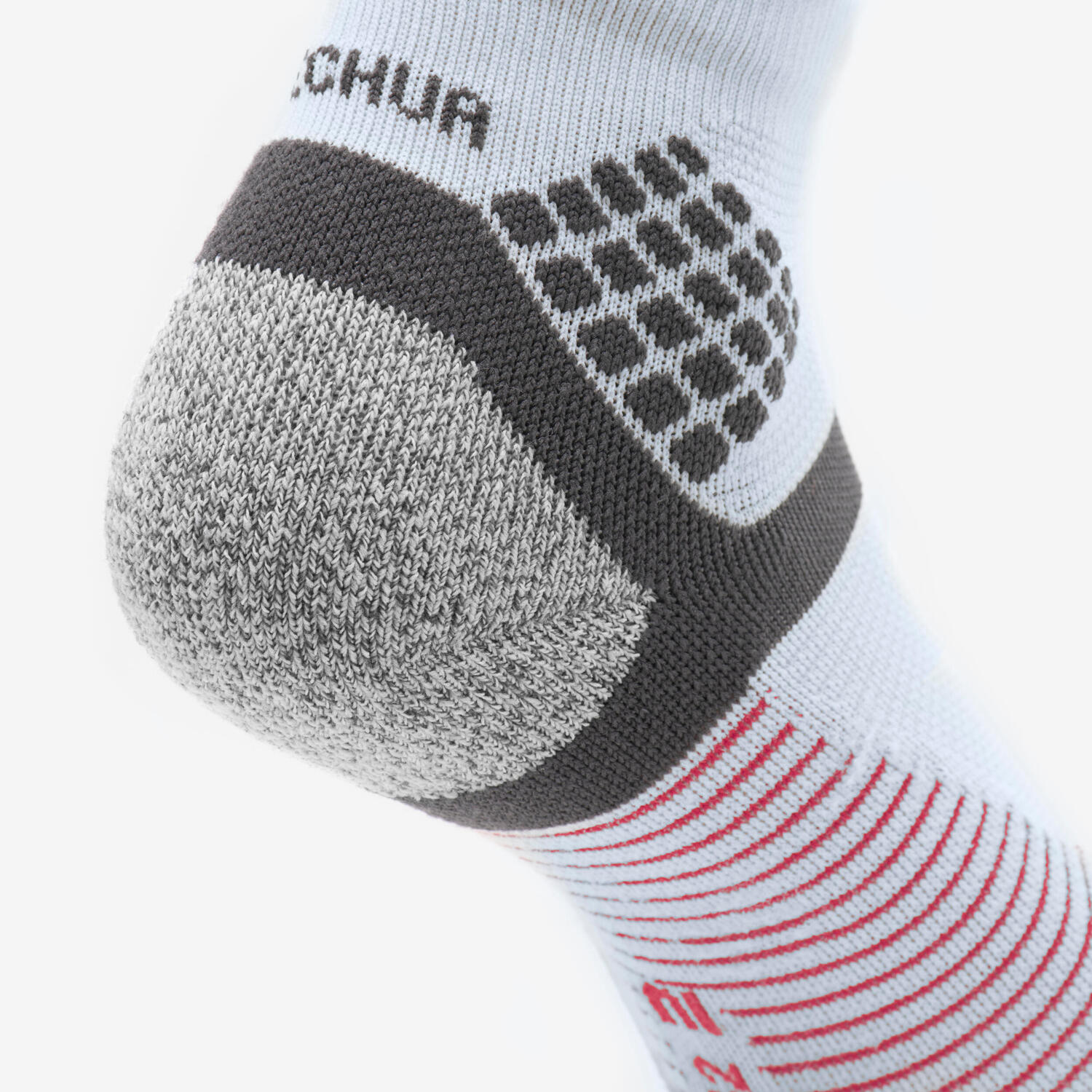 Состав: 5% спандекс, 95% нейлон. Все наши носки проходят лабораторные и полевые испытания на токсичность, устойчивость к ультрафиолетовому излучению, износостойкость, ускоренное старение и долговечность. Наша команда дизайнеров задумала, спроектировала и спроектировала походные носки Quechua у подножия Монблана во Франции. Мы протестировали их на максимально возможном количестве маршрутов в различных погодных условиях, участвуя в полевых испытаниях с другими туристами, чтобы убедиться в их исключительном комфорте и долговечности.