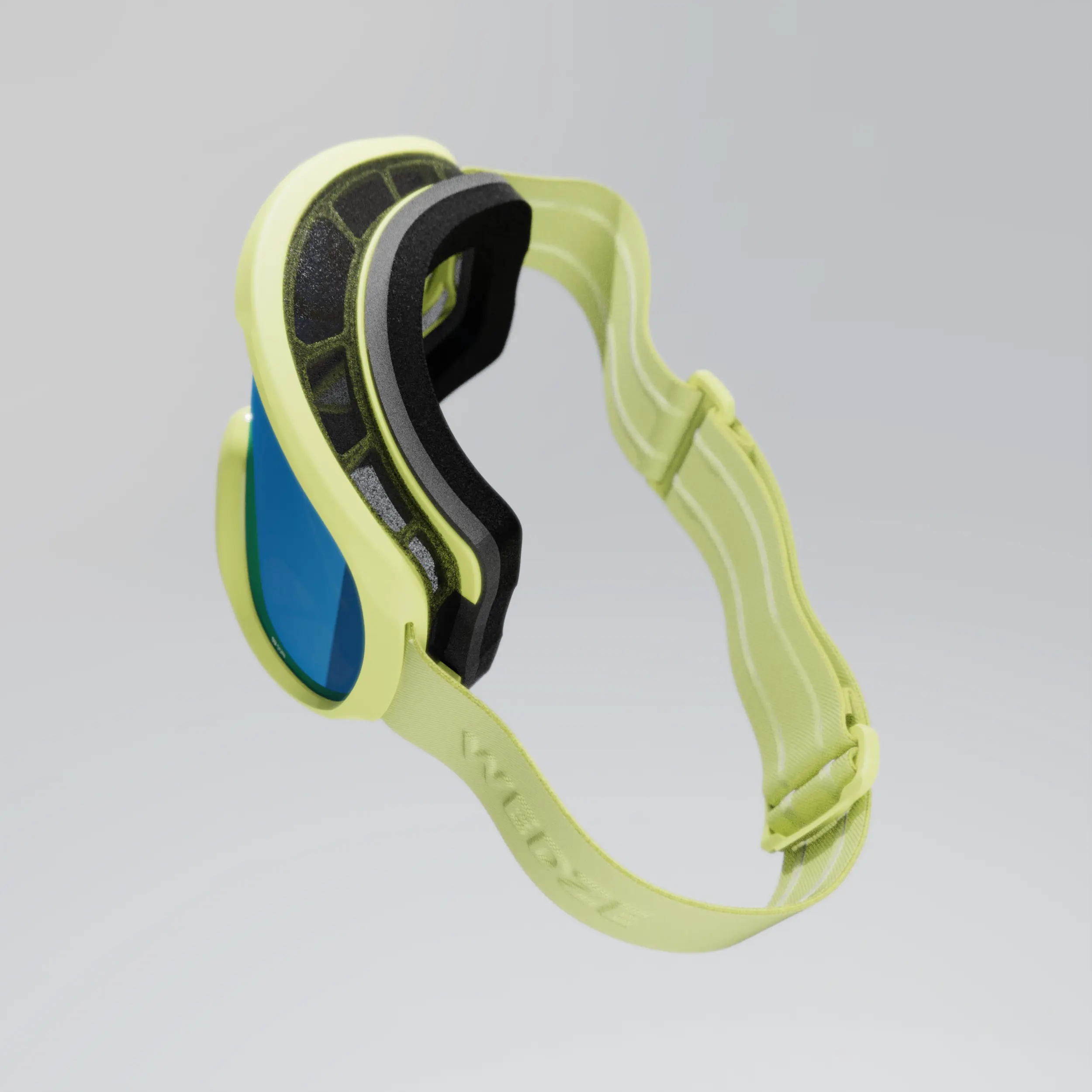 Материалы: Оправа: 100% термопластичный полиуретан; Эластичная лента: 36% синтетический каучук, 33% нейлон, 31% полиэстер; Экран: 60% поликарбонат, 40% ацетат; Пенный слой: 100% полиуретан. Тестирование: Все товары Decathlon для зимних видов спорта тестируются в реальных условиях: в условиях снега, холода и любых других условиях, с которыми вы можете столкнуться во время катания на лыжах. Наша команда дизайнеров, менеджеров по продукции, инженеров и модельеров одежды гарантирует, что дизайн продукции максимально соответствует условиям реального использования.