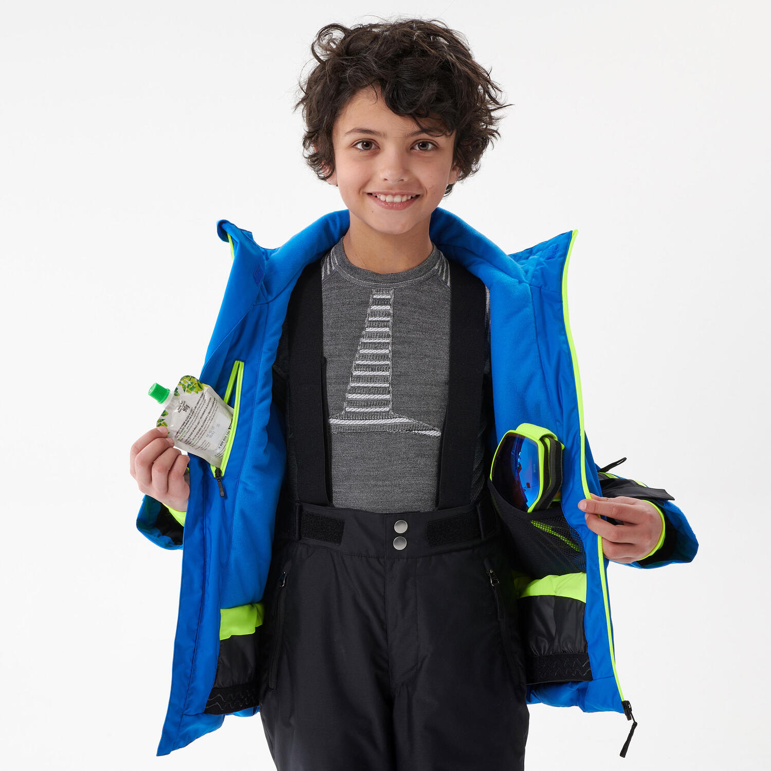 Утеплитель – это способ поддерживать лыжникам оптимальную температуру: не слишком жарко и не слишком холодно. Одежда адаптируется к движениям тела и внешним условиям. Wed'ze использует для тепла полый хлопковый наполнитель. Количество воздуха, которое может удерживать этот искусственный полиэстер, зависит от размеров ткани. Чем толще наполнитель, тем больше воздуха он удерживает и тем больше тепла обеспечивает. На внутреннюю поверхность ткани нанесено водонепроницаемое покрытие. Горнолыжная куртка водонепроницаема, но позволяет поту легко испаряться, сохраняя детей сухими и комфортными. Проклеенные швы, как и у водонепроницаемых тканей, повышают водонепроницаемость наших термобрюк. Водонепроницаемые полосы проклеены и прошиты изнутри для обеспечения полной водонепроницаемости. Все швы проклеены, создавая надежную герметизацию и гарантируя полную водонепроницаемость. Снегозащитная юбка: Снегозащитная юбка – это защитная система, расположенная на талии. В этой куртке она автоматически застегивается, когда ребенок застегивает молнию. Это предотвращает попадание снега и воздуха внутрь во время тренировки, особенно в случае падения. Карман для ски-пасса: больше не нужно доставать ски-пасс! Карман для ски-пасса на рукаве обеспечит быстрый доступ к подъёмникам. Изготовленная по индивидуальному заказу подкладка позволяет прикрепить именную бирку. Одежду ребёнка легко найти во время занятий по горнолыжному спорту, в детском саду или после школы. Как ребёнку согреться на склонах? Чтобы оставаться в тепле и сухости, мы рекомендуем использовать трёхслойную систему. Первый или второй слой — это ваша кожа, которая сохраняет сухость. Второй, или изолирующий, слой сохраняет тепло. Третий, или защитный, слой защищает от непогоды.