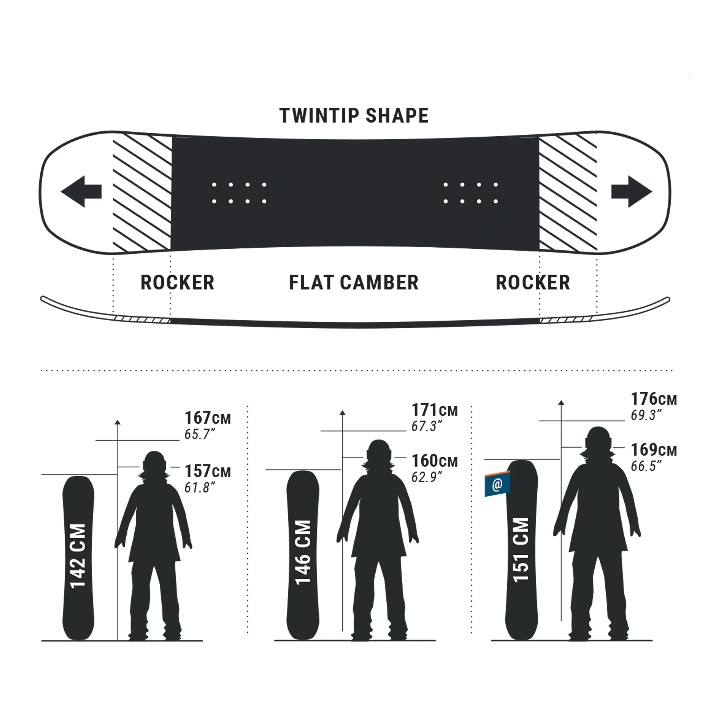 156 см шириной => 1,74–1,81 м Примечание менеджера по продукту: Endzone 500 — более игровая доска в серии. Мы хотели, чтобы она была простой в управлении, но при этом оставалась доской для фристайла: техничной, игривой, управляемой и веселой... Нам эта доска нравится, но что еще важнее, она понравится и вам! Мы будем рады услышать ваше мнение и с нетерпением ждем ваших комментариев. Планирование/Рельеф: Endzone 500 немного менее прыгучий на склонах, чем Allroad 500, но хорошо подходит для сноупарка, перил и трамплинов. На склонах легко делать крутые повороты и кататься по краю трассы. Flat Прогибы Camber и Rocker, а также мягкое, надежное сцепление между стопами, идеально подходят как опытным лыжникам, ищущим игровую доску, так и новичкам, интересующимся фристайлом. Twintip Dual-Ski Snowboard: этот сноуборд имеет конструкцию Twintip Dual-Ski. Симметричные боковые вырезы между передней и задней частью обеспечивают идеальное центрирование и симметрию, позволяя уверенно двигаться в обоих направлениях. Конструкция с двойной юбкой обеспечивает всесторонний баланс во время поворотов (на земле и в воздухе). Flat Camber + Rocker Camber. Flat Camber — это комбинация Standard Camber (хорошее сцепление и толчок) и Reserve Camber (контролируемое вращение и меньшее сцепление). Идеально подходит для лыжников, катающихся в парке и начинающих, потому что: - Flat Camber улучшает устойчивость на трамплинах и склонах; - Rocker Camber обеспечивает прощаемость в парке и на склонах, поскольку углы лыж не касаются снега. Коэффициент жёсткости составляет 5/10, с жёсткостью между носком и пяткой. Лыжи Endzone 500 имеют коэффициент жёсткости примерно 5/10, что делает их прощающими ошибки и игривыми. Жёсткость очень постоянна от носа до пятки, что позволяет выполнять предсказуемые и лёгкие повороты. Однако их недостаток заключается в том, что на высоких скоростях или на жёстком снегу может быть сложно поддерживать аккуратные повороты. Мягкость лыж делает их очень прощающими ошибки. Коэффициент жёсткости лыж Endzone 500 составляет примерно 5/10, что обеспечивает лёгкость манёвра и прощает ошибки кантовки. Мягкая жёсткость обеспечивает большую свободу движений между стопами. Это крайне важно для новичков: она обеспечивает большую прощаемость ошибок. Мягкая жёсткость также подходит для фристайла и паркового катания, идеально подходит для отработки трюков! 0 мм смещений. Смещениями называют смещение точки давления лыжи относительно центра доски. Крепление также смещено на такое же расстояние. 0 бэксетов. Эти лыжи с двойными носками идеально центрируются в любом направлении и сохраняют равновесие во время поворотов (в воздухе или на гладком склоне). Рекомендуемое крепление — SNB 500; комбинация лыж + креплений будет соответствовать как возможностям пользователя, так и дизайну продукта. Когда следует парафинировать лыжи? Лыжи Decathlon смазываются на заводе. Как и любые другие лыжи, они требуют регулярного ухода: в идеале парафинируйте лыжи после пяти использований и не реже одного раза в год: - В начале сезона наносите парафин на лыжи для оптимального скольжения. - В конце сезона наносите парафин на лыжи, чтобы лыжи могли проникнуть в скользящую поверхность летом. Качество скольжения: скользящая поверхность изготовлена из спеченного полиэтилена, но используются две разные технологии: - Экструдированная скользящая поверхность, полиэтилен определенной плотности. - Спе