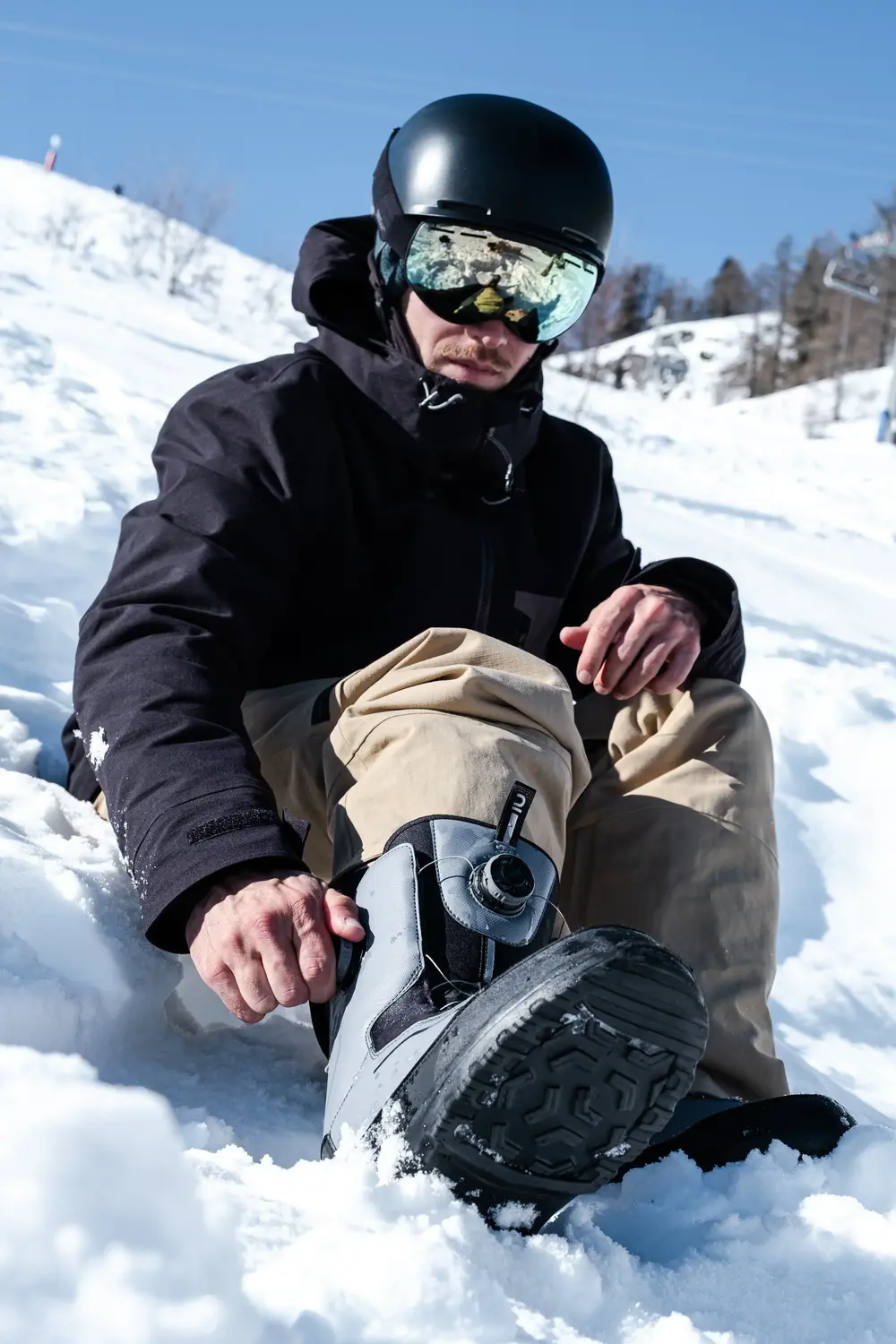 Другой диск позволяет регулировать верхнюю часть ботинка с точностью до миллиметра, что позволяет настроить жесткость ботинка. Система habu Fit System (созданная с использованием технологии Boa) состоит из трех ключевых технических компонентов, которые меняют процесс катания на лыжах и сноуборде: 1) Инновационный диск habu обеспечивает микрорегулировку и точную регулировку.