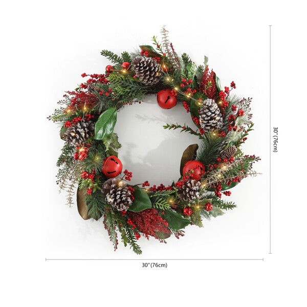 Украсьте свой праздничный интерьер, добавив вечные рождественские цвета и жизнерадостность нашему светодиодному венку из искусственного мирта с красными колокольчиками. Его пышная зеленая листва приобретает праздничный оттенок благодаря искусственным миртам и красным колокольчикам. Этот эффектный венок, сочетающий в себе реалистичную листву и классические рождественские цвета, добавит вашему дому еще больше праздничного настроения. Он освещается теплым светом светодиодов, создавая очаровательное зрелище, которое можно повесить на дверь, поставить на каминную полку или окружить потухшие свечи-столбики.