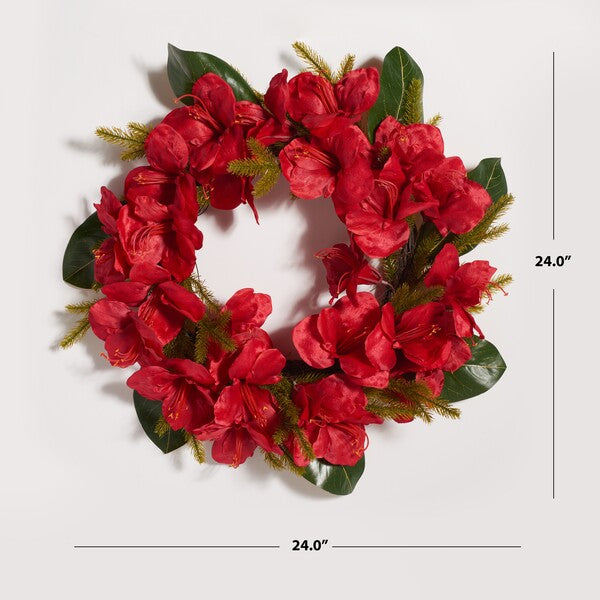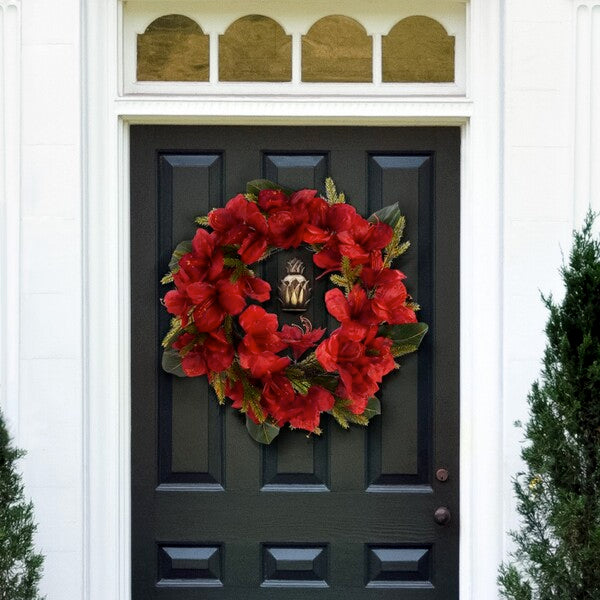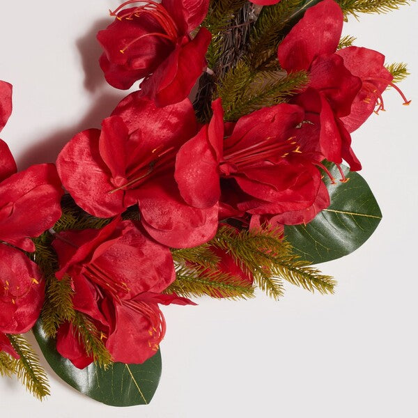 Венок декоративный Safavieh из листьев амариллиса и магнолии, 61 см, красный / зеленый